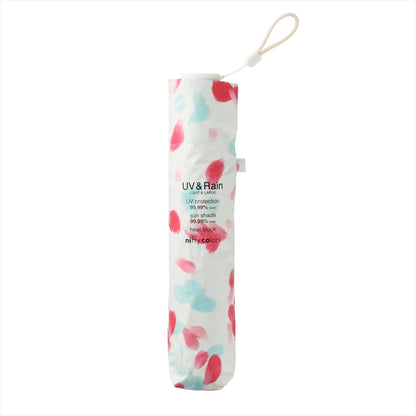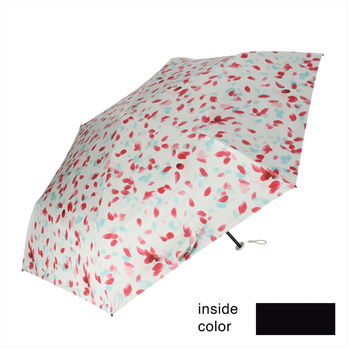 全面に花びらが広がっていますが、赤と淡いグリーンの2色で構成されているので、派手すぎず、スッキリまとまったデザインになっています。裏側のポリウレタン加工の色はブラックになっているので、表の柄を引き立てつつ光を吸収し日陰を作る効果があり、強い日差しに最適です。