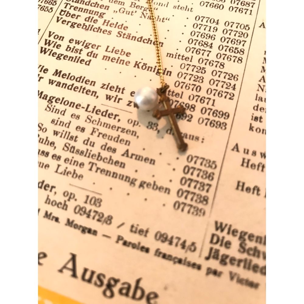 クロスとパールをつけています。