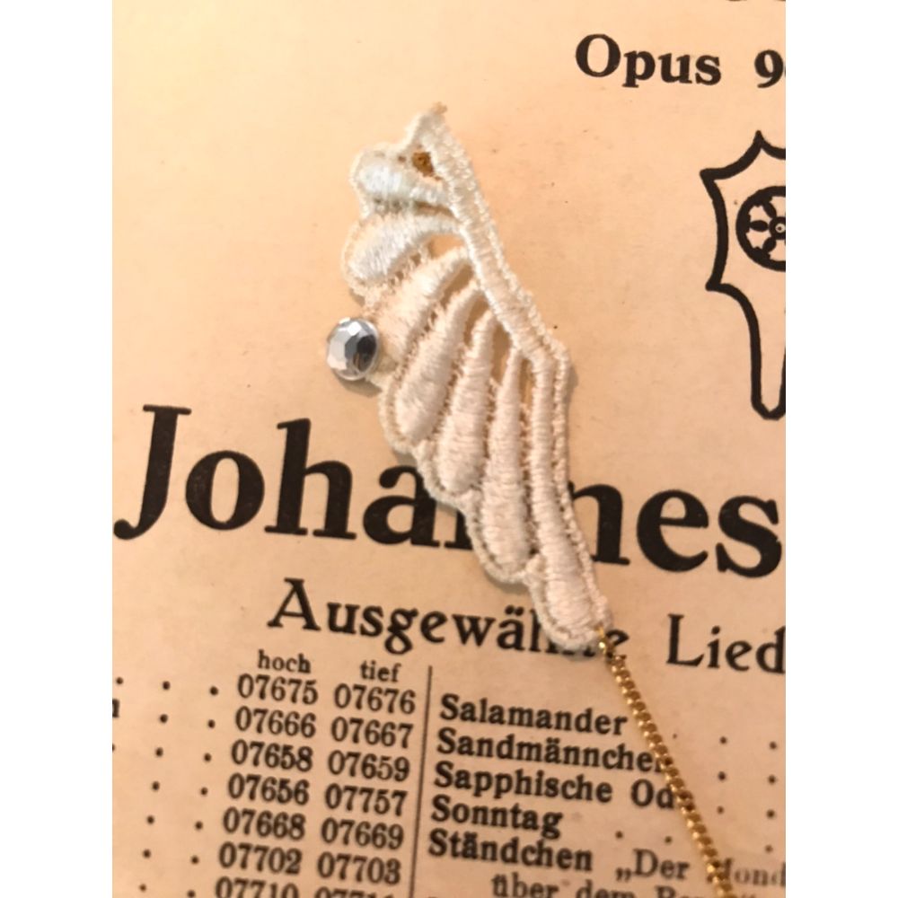 珍しい羽モチーフのレースをポイントにした
