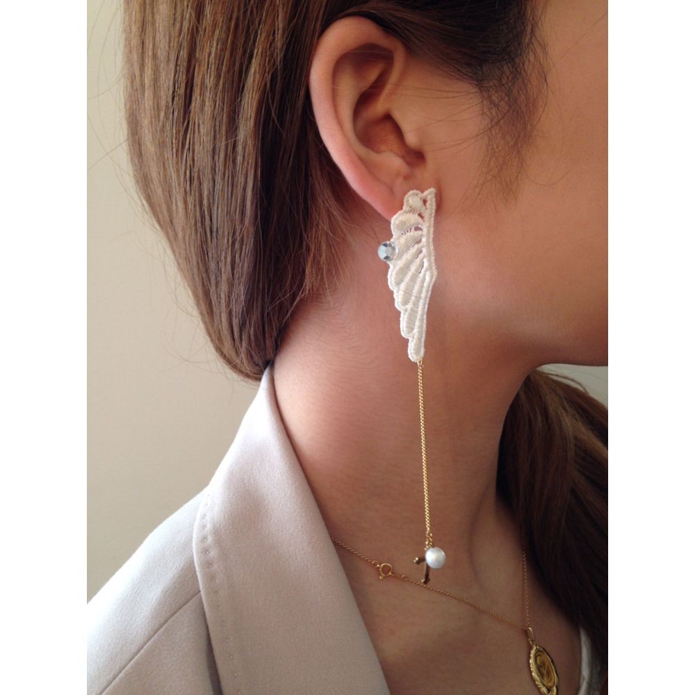 羽レースのロングチェーンピアス【右耳用】 【結婚式 ピアス イヤリング】