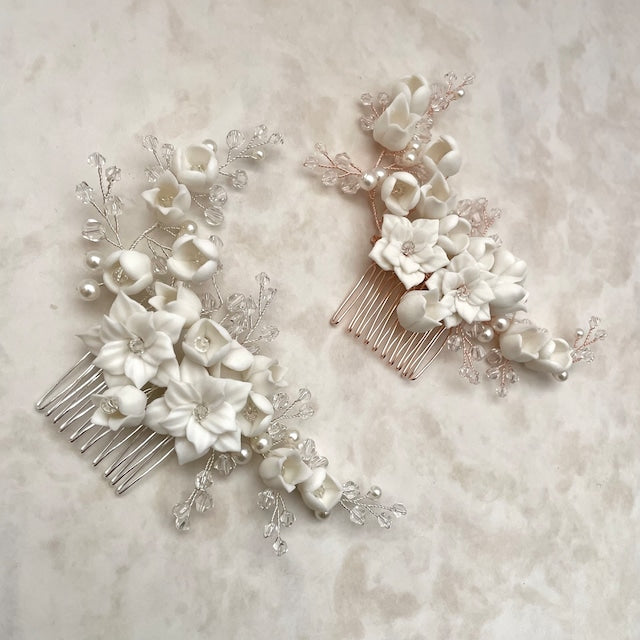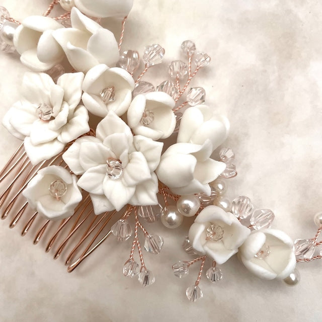 クレイで一つ一つ細かく創られた可愛い小枝アクセサリーのヘッドコームです。