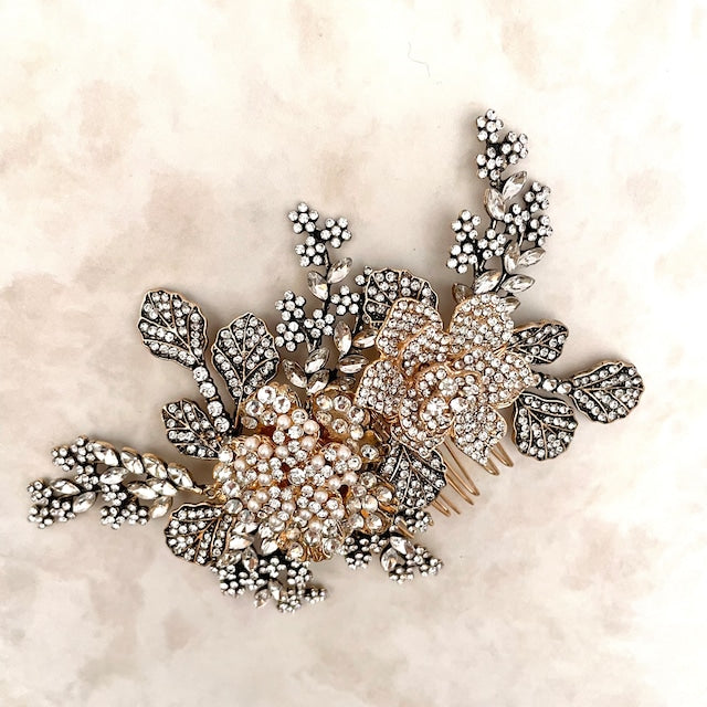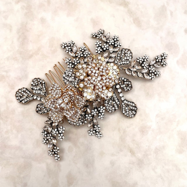 アンティークゴールドとゴールドがミックスされたヘッドアクセサリーです。