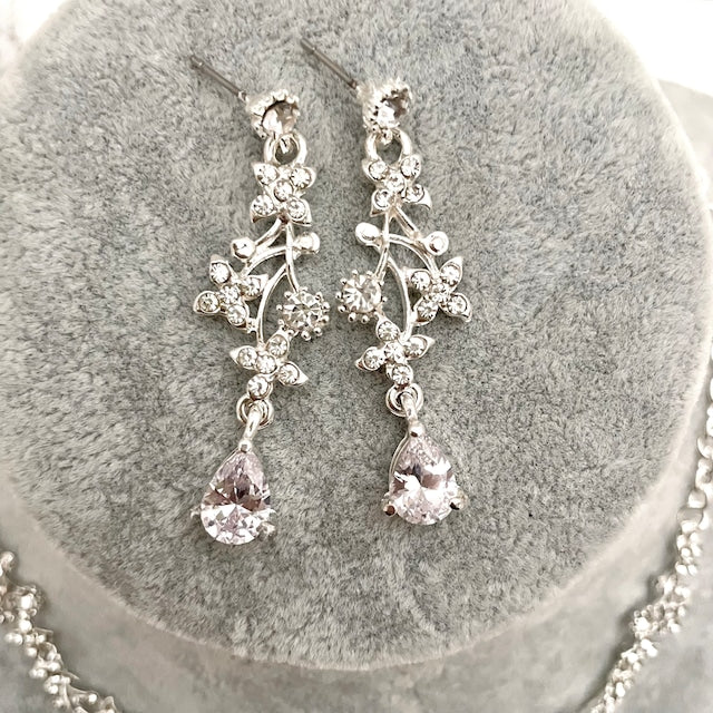 ピアスは長さもあり、こちらも下部にはラインストーンが付いており、セット商品ではあまりみられない凝ったデザインとなっております。