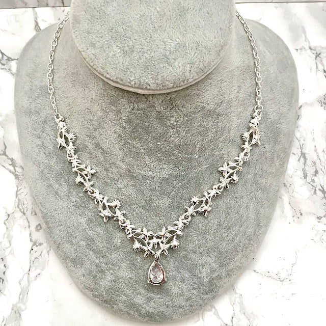 ネックレスのtopには大粒のラインストーンが輝き、品があります。