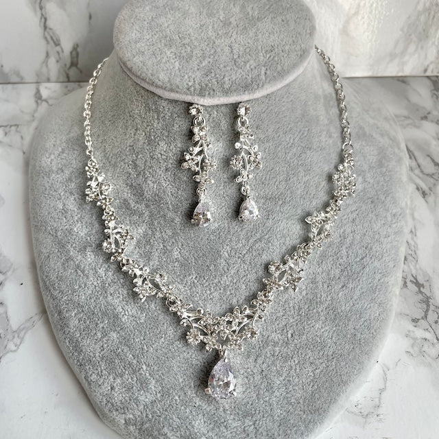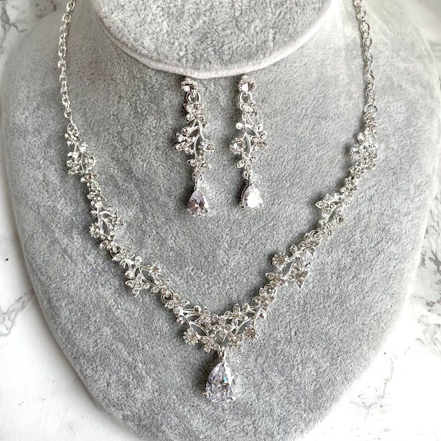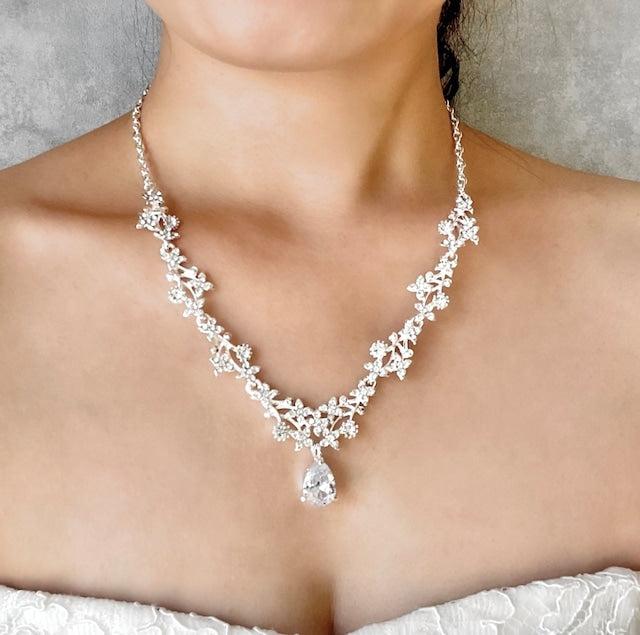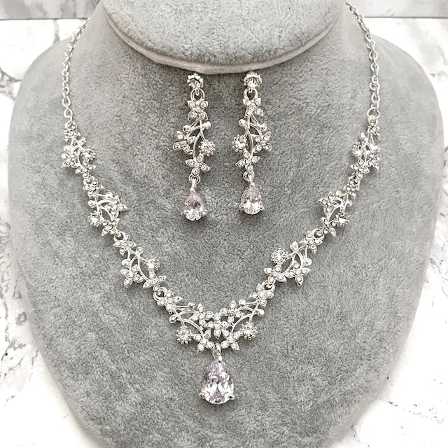jouer silverビジューブライダルネックレス&ピアスセット 【結婚式 アクセサリーセット】