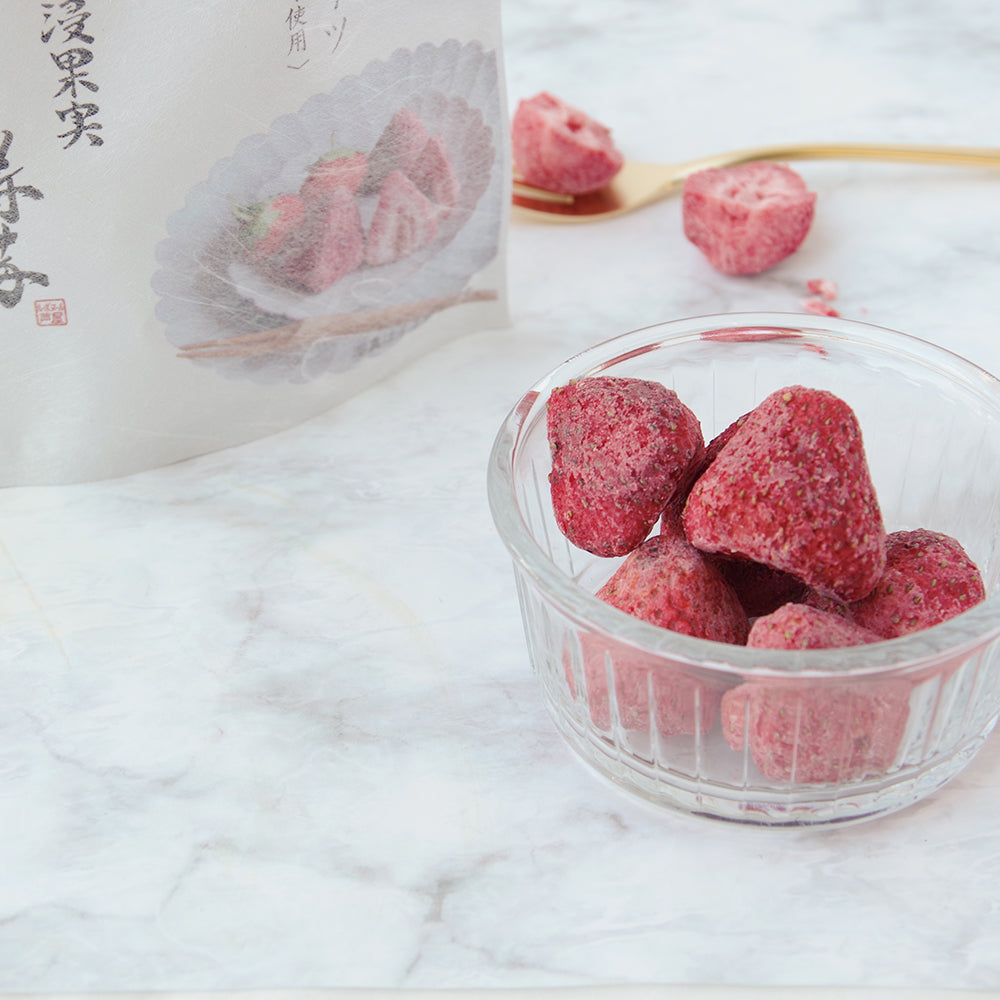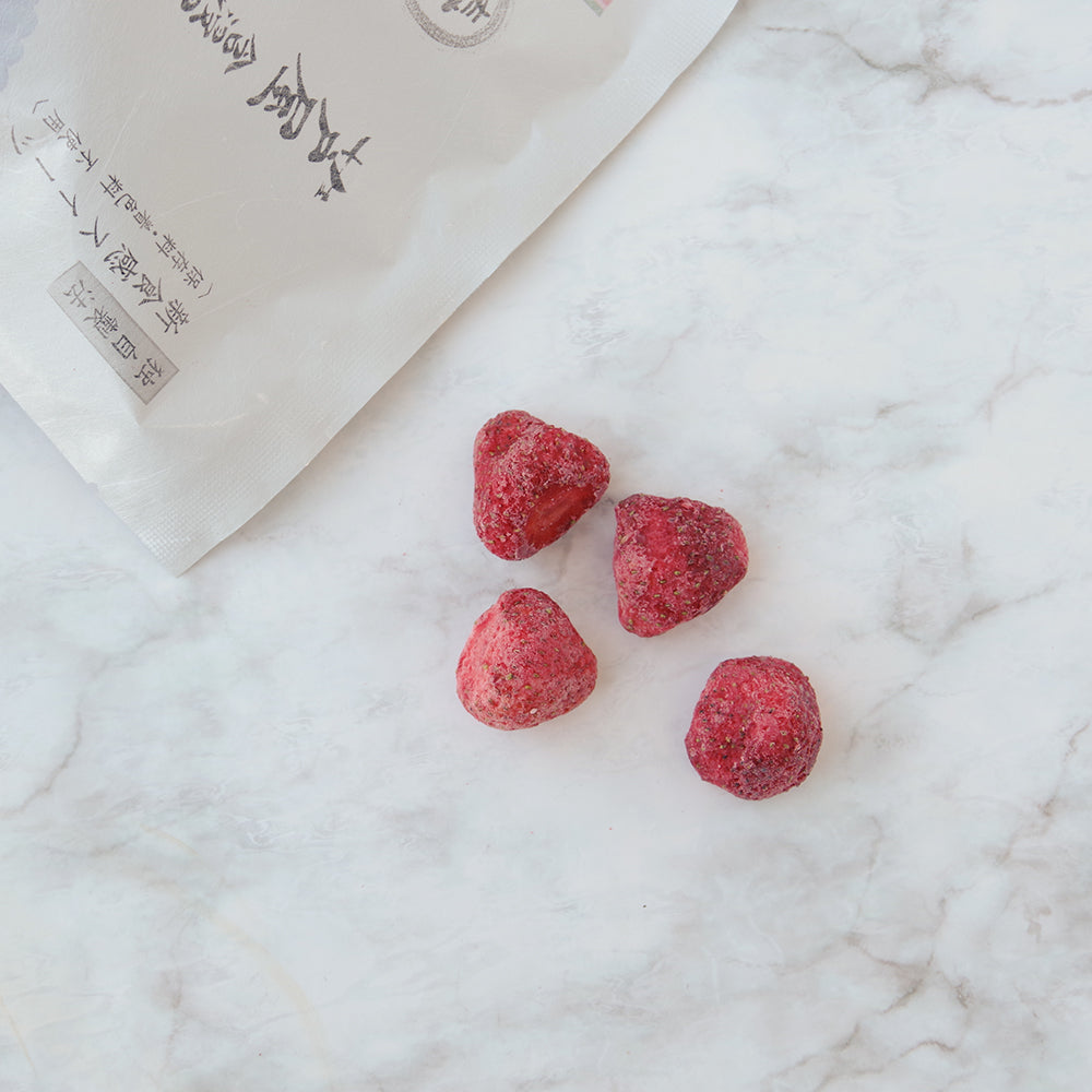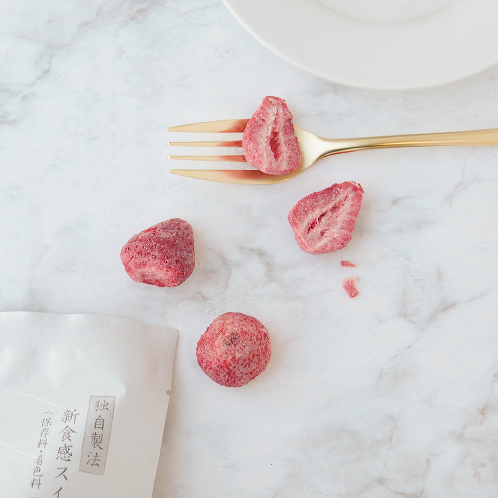 フリーズドライの丸ごと苺にホワイトチョコレートを染み込ませた全く新しいチョコレートのお菓子。