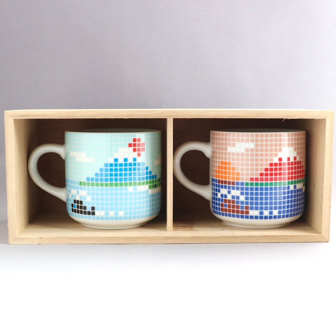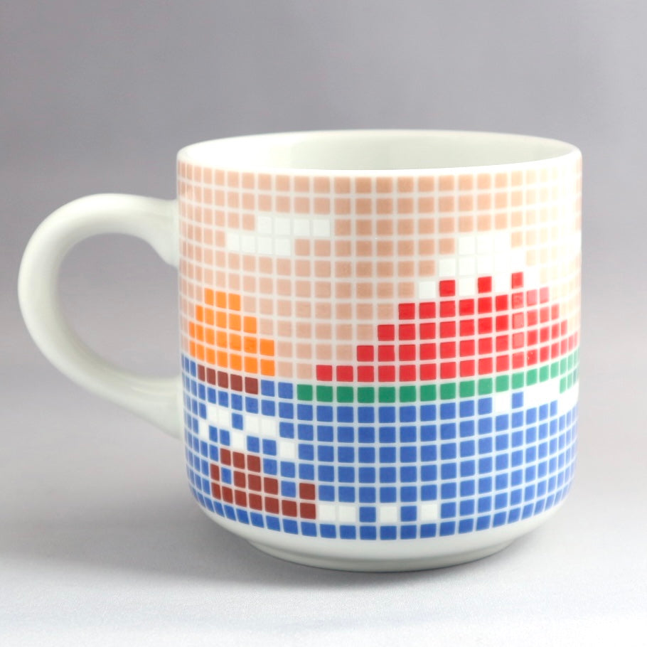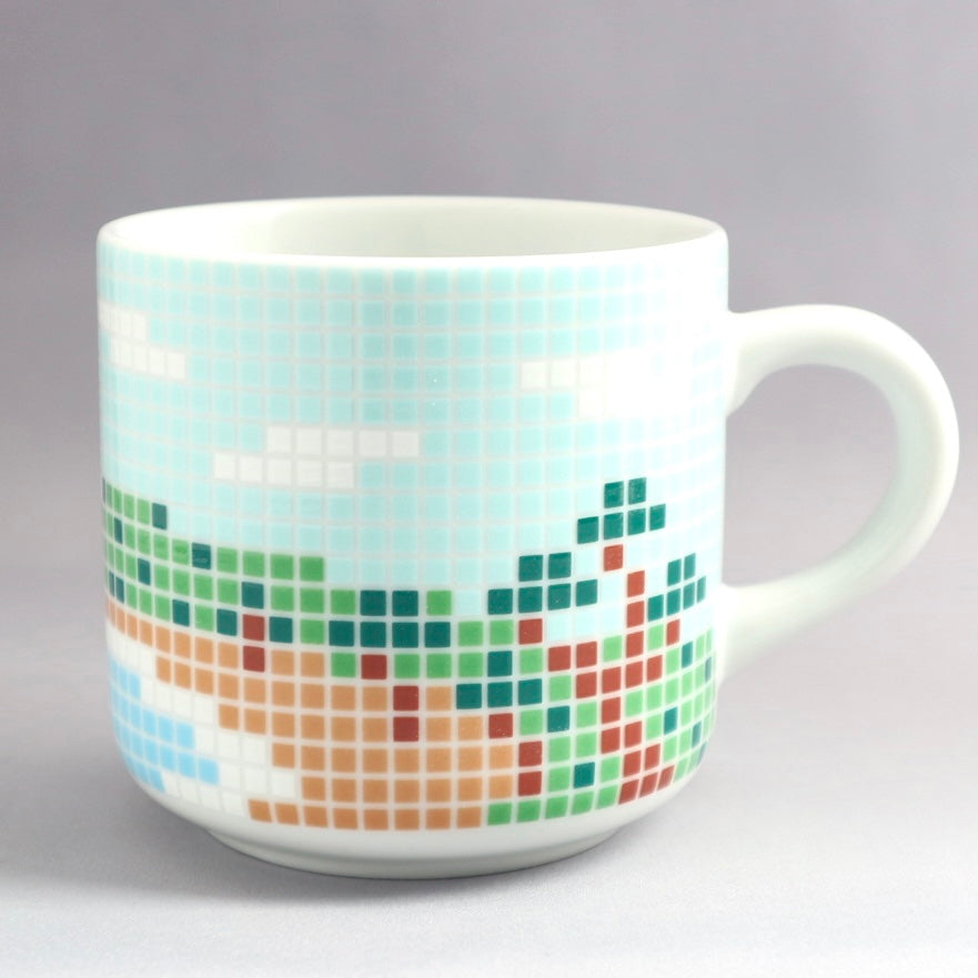 銭湯の壁画をイメージした懐かしくも新しいデザインの富士山マグ。凸凹したタイルのような質感もポイントです。