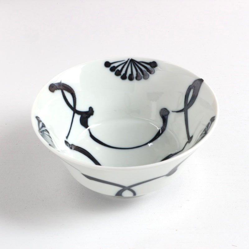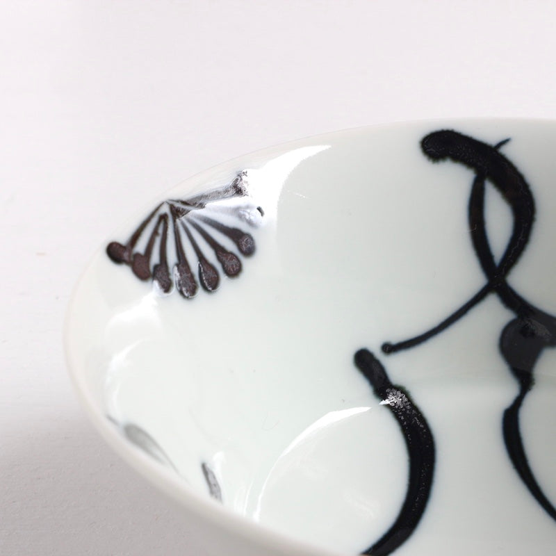 扇子のような末広がりの形には、広がり栄える意味がこめられています。器の内側には、江戸時代の人々が好んで身につけた3種の縁起柄が描かれ、味わい深い佇まいとなっています。