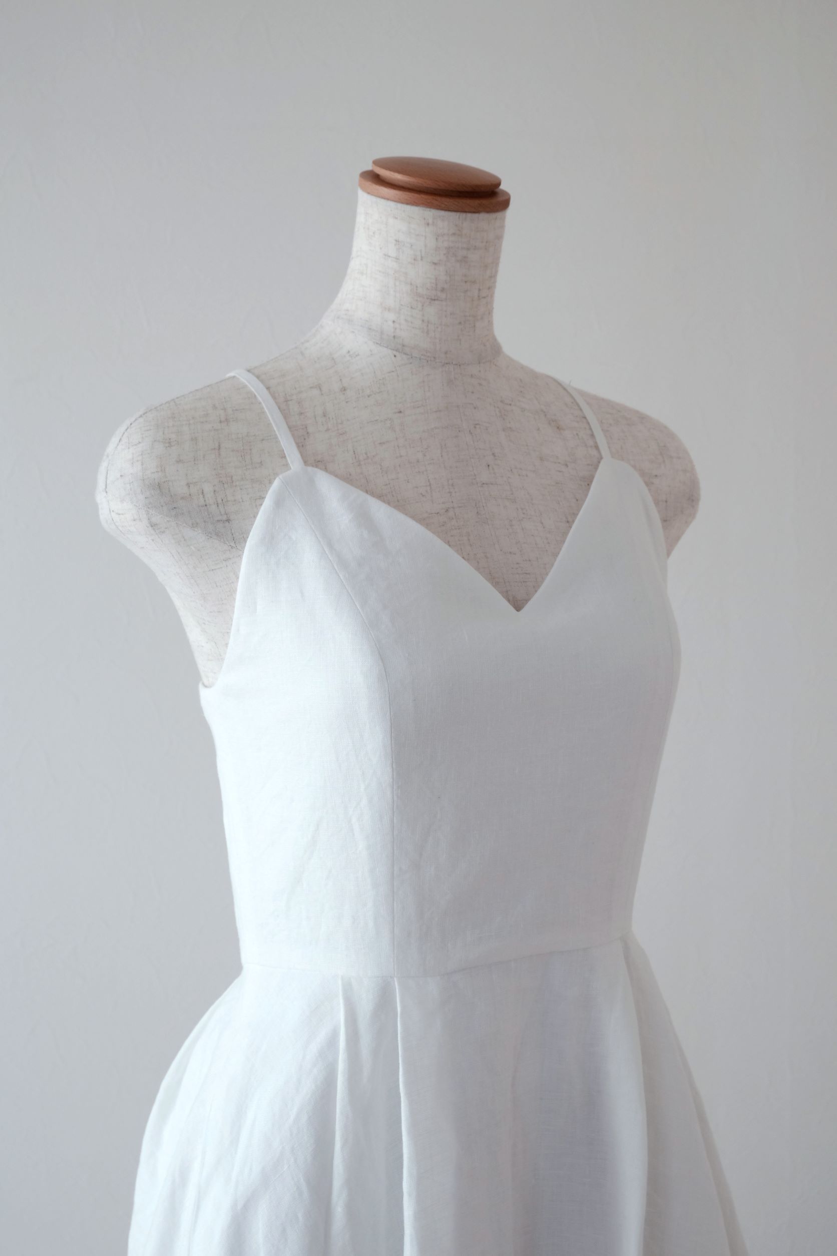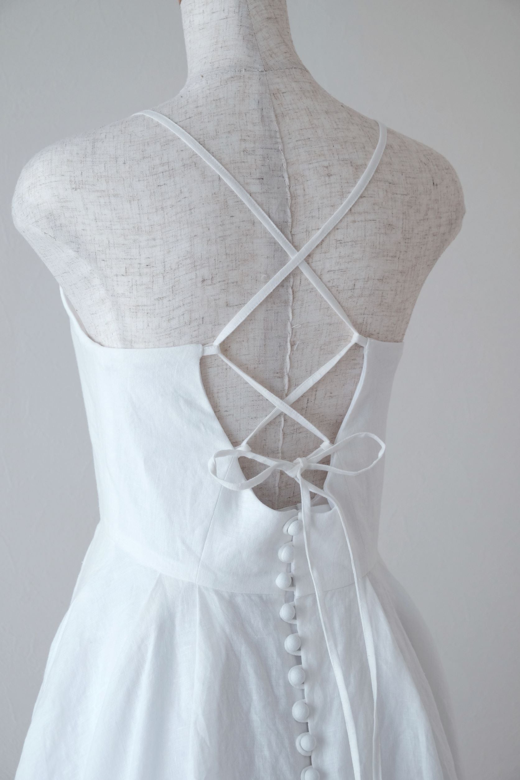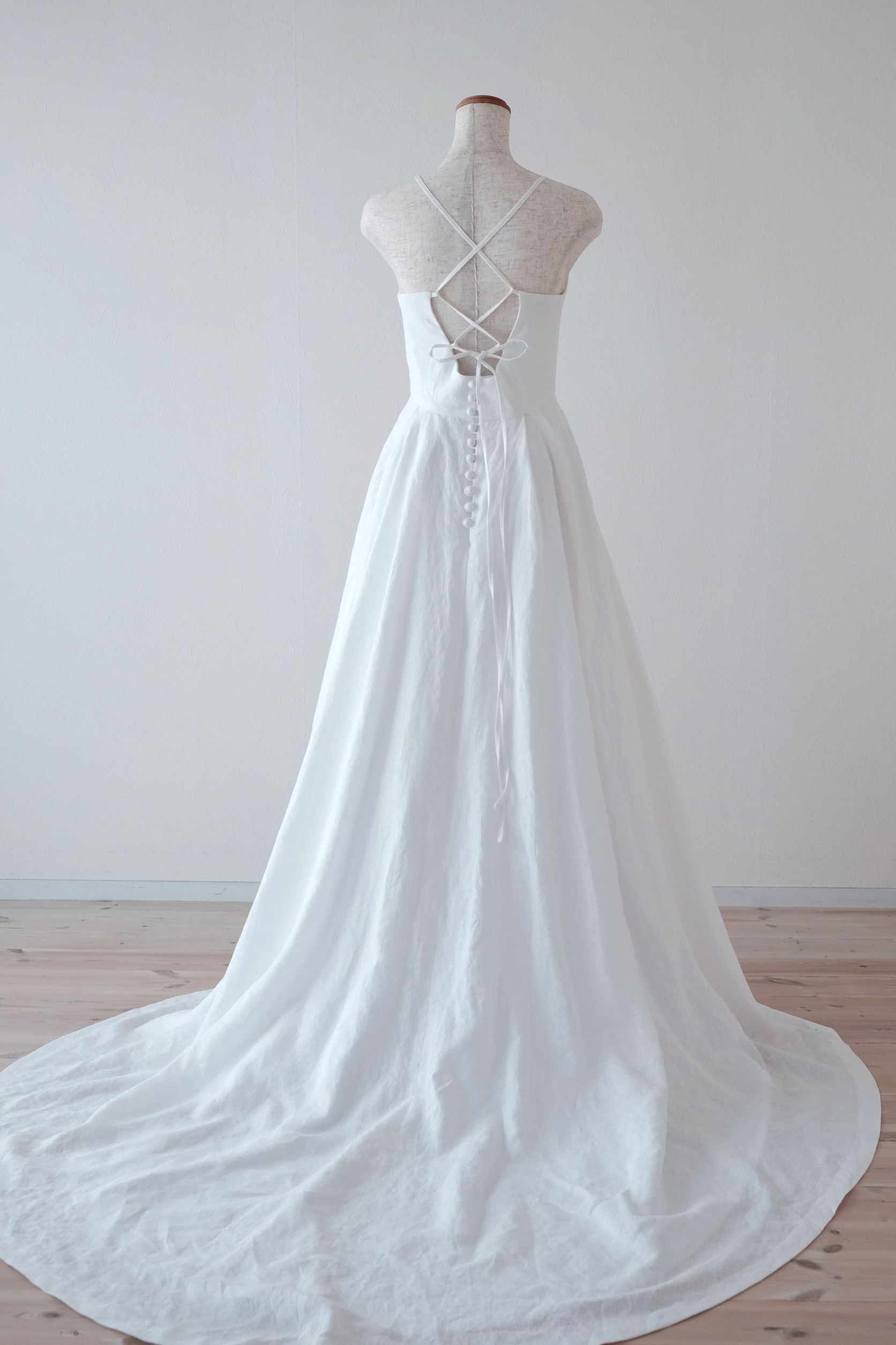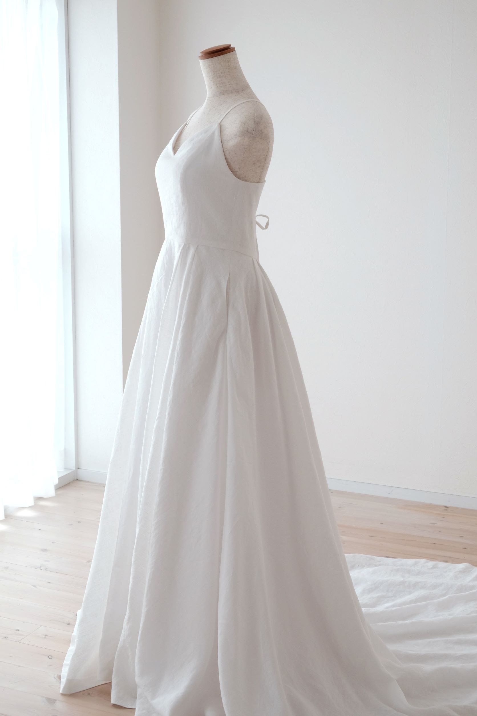 ナチュラルな風合いをだしながらも、たっぷりとったスカートの分量が華やかさのあるドレスです。