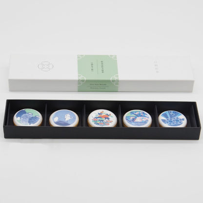 白磁の生地を彷彿させるアイシングクッキーの真っ白い表面に、美しいやきものの絵柄を施しました。
