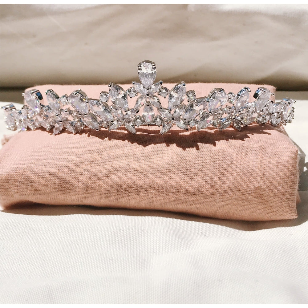 トレンドの高さが低めのティアラは、キュービックジルコニアのエレガントな輝きが