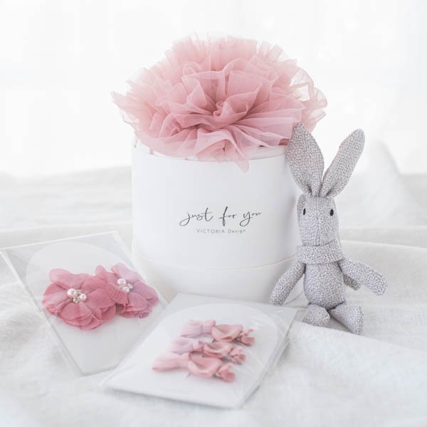 ※チュールスカート1枚、リボンの髪留め3個、お花のヘアバンド1個、うさぎのぬいぐるみ1個、おむつ8枚のセットです