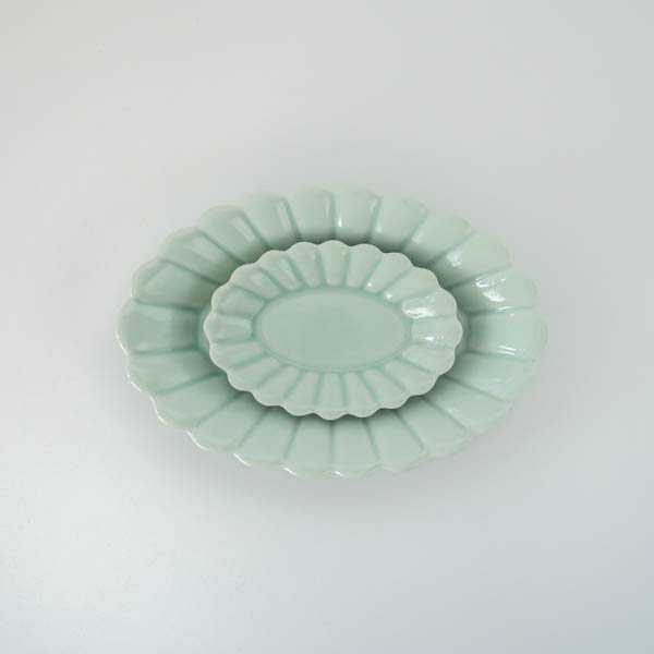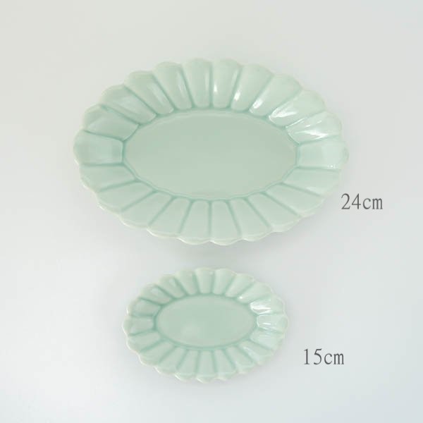 波佐見焼キクワリオーバルプレート15cm(ライトブルー) 【結婚式 ギフト 引き出物 食器類】