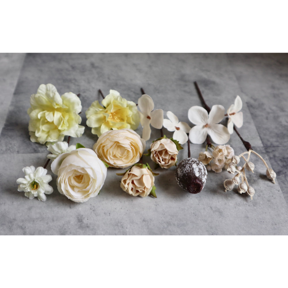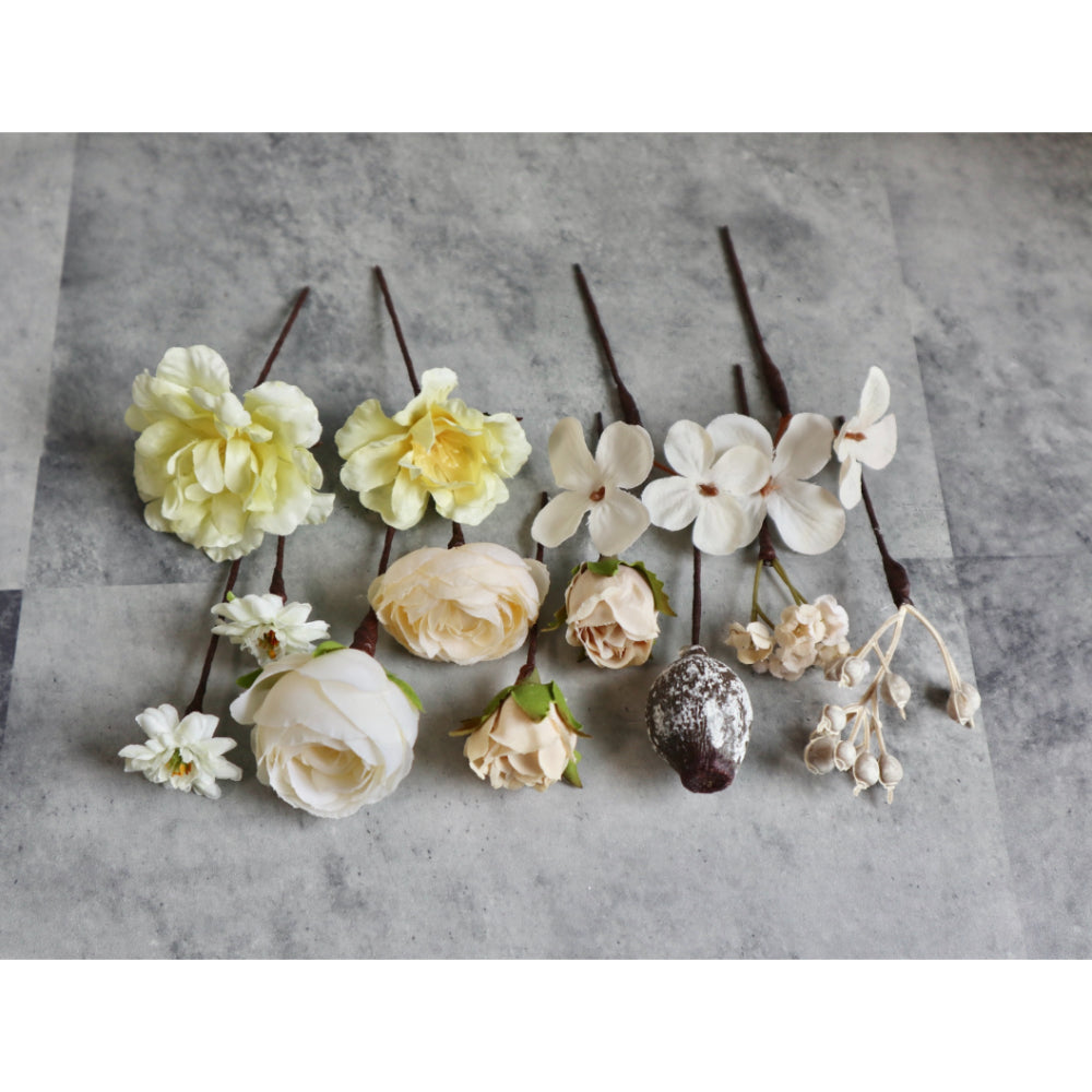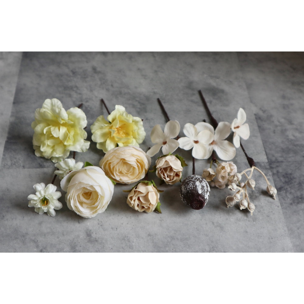 【造花】フラワーヘアアクセサリー#18/イエロー・ベージュ・クリーム 【結婚式 ヘアアクセサリー】