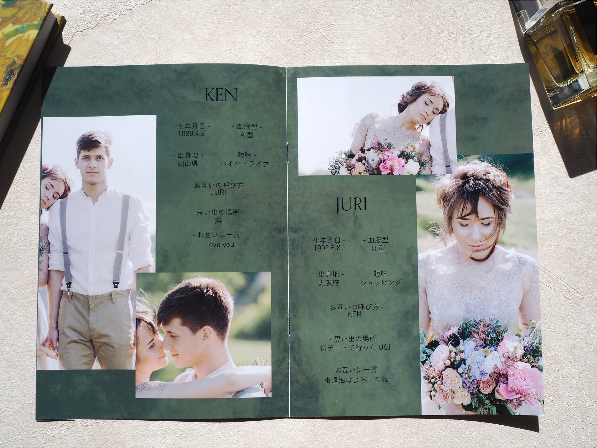 おふたりのプロフィールや写真がぎゅっと詰まったプロフィールブックに仕上がります。