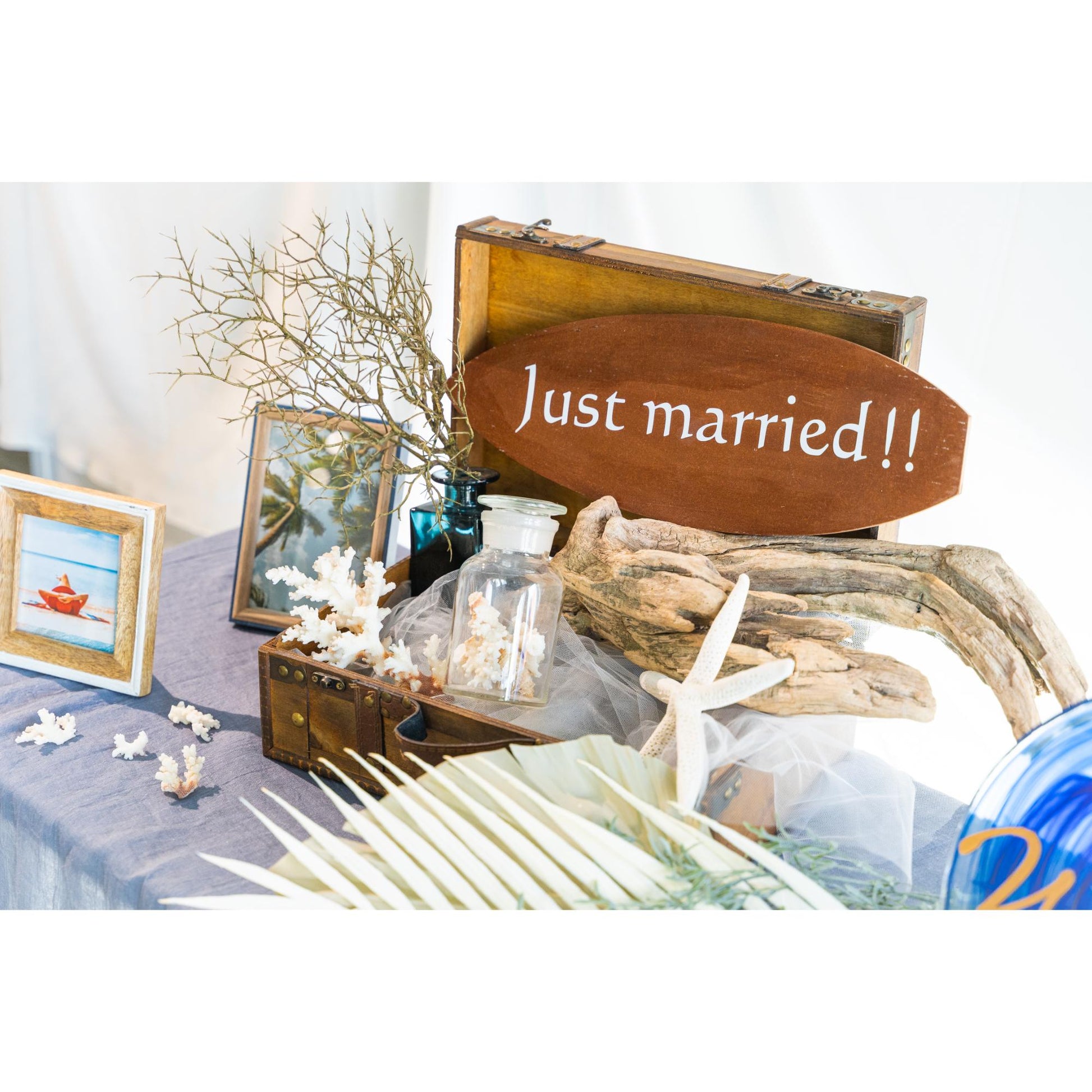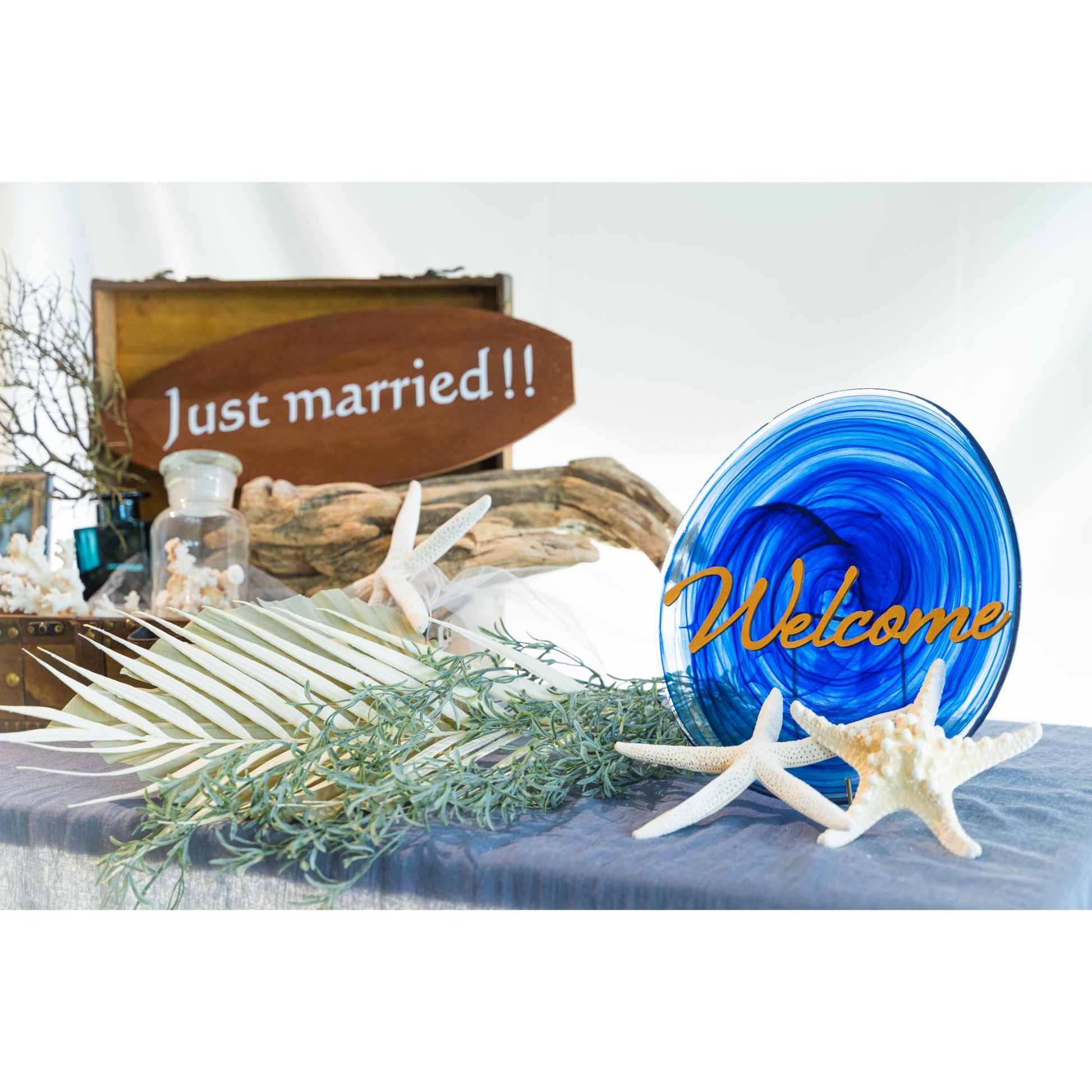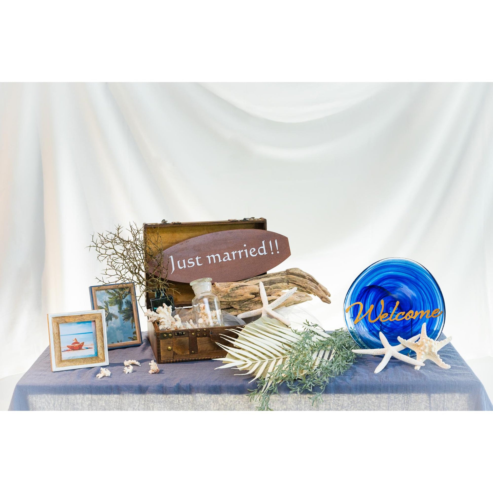 | 商品サイズ寸法 | 【トランク】1個 縦23×横34×高さ13cm 【ウェルカムプレート】1個 直径26cm 【サーフボードプレート】1個 縦14.2×横40.3cm 【フォトフレーム・S】1個 外枠:縦14×横14cm 写真サイズ:縦10×横10cm 【フォトフレーム・M】1個 外枠:縦17×横12.2cm 写真:サイズ縦15.2×横10.2cm 【ブルー花瓶】1個 縦6×横6×高さ10cm 【メディシンボトルオブジェ】1個 直径6×高さ11.5cm 【流木オブジェ】1個 長さ44×幅16cm 【ヒトデ】2個 縦17×横17cm 【珊瑚】1個 16㎝ 【ブルー布地】1枚 長さ200.6×幅156cm 【チュール】1枚 長さ105.6×幅93cm 【グリーン・葉っぱ・海藻類】各1個 ①長さ77cm ②長さ66cm ③長さ37cm メジャーでの採寸のため、多少の誤差がある場合がございますがご了承ください。 |