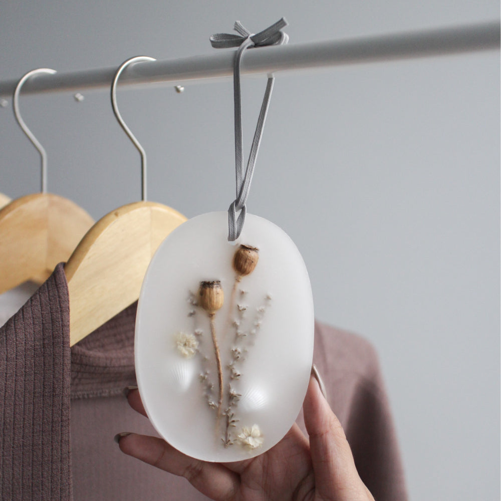 使い方:クローゼットに吊るして香りをお楽しみください。芳香期間は約3か月。香りが薄くなってもドライフラワーのチャームとしてお好きな場所に飾っていただけます。