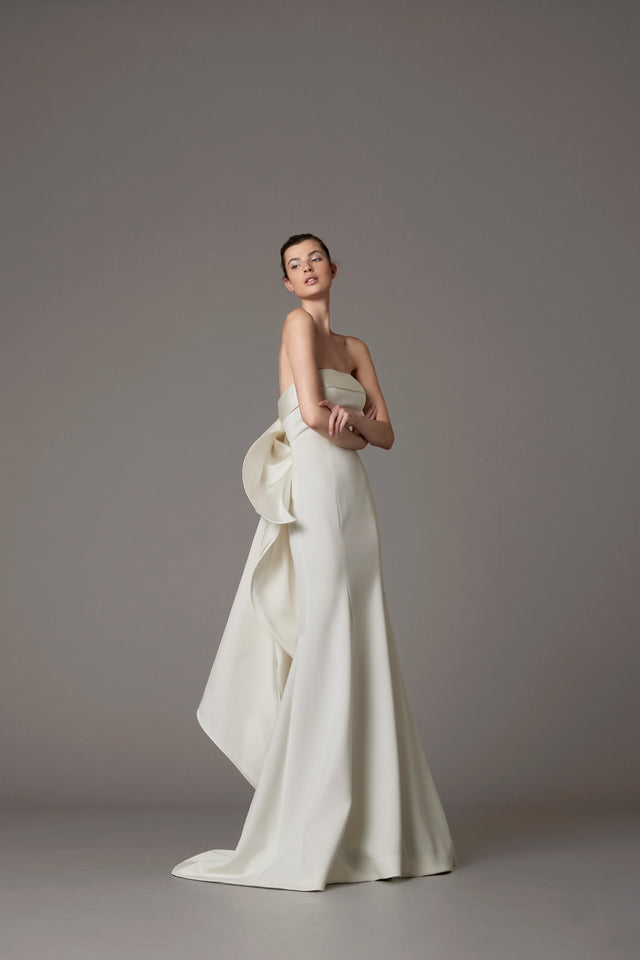 シンプルなビスチェにアントニオリーヴァならではの立体的なバックリボンが美しいシルエットを作り出す。