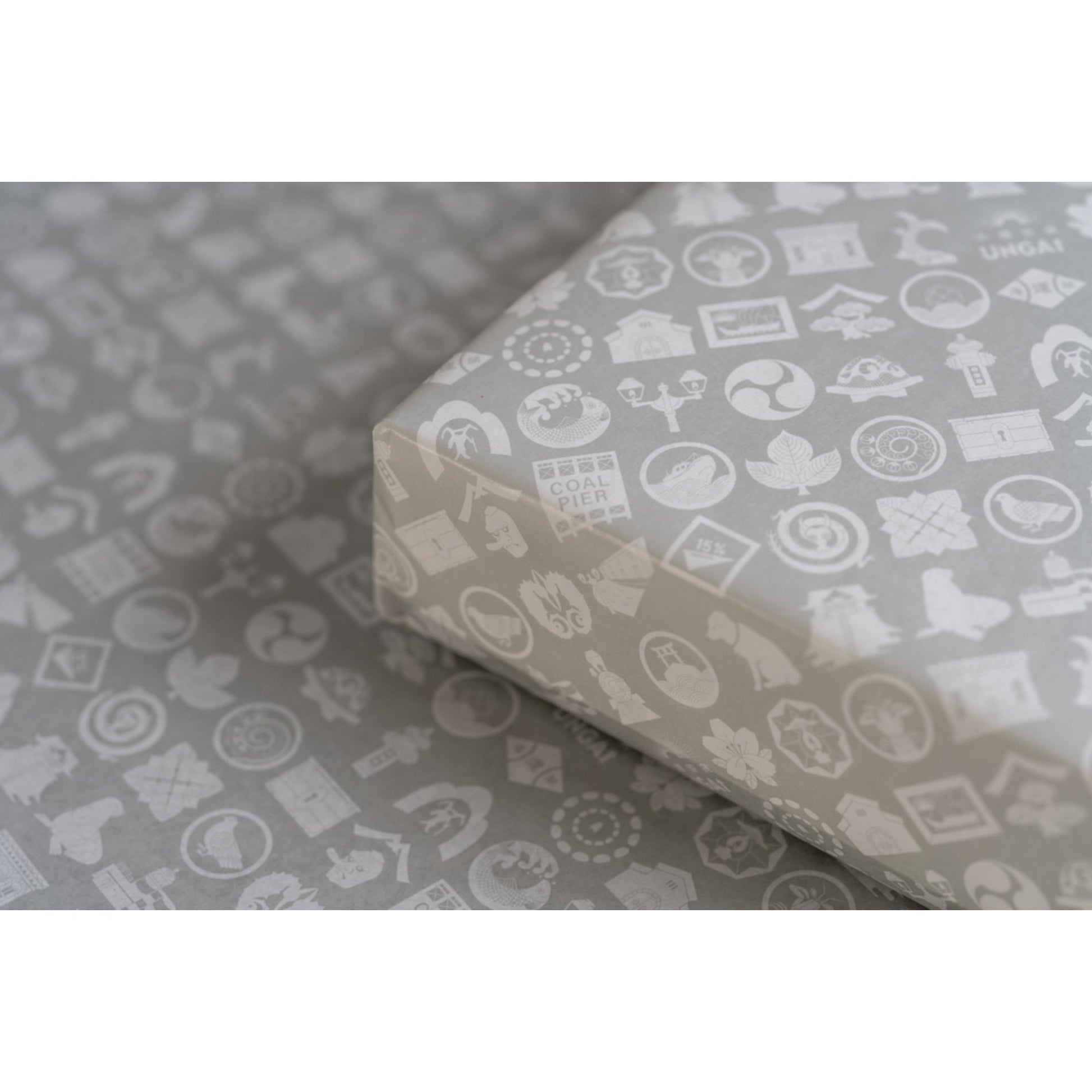 小樽の歴史名所をアイコンであしらった当店オリジナルの包装紙でお包みします。