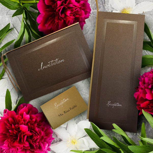 光沢のある押し加工が立体感を出し、ブラウンゴールドの美しい輝きを放つ高級パール紙とシルバーの箔押しが、空間を美しくオシャレに演出します。