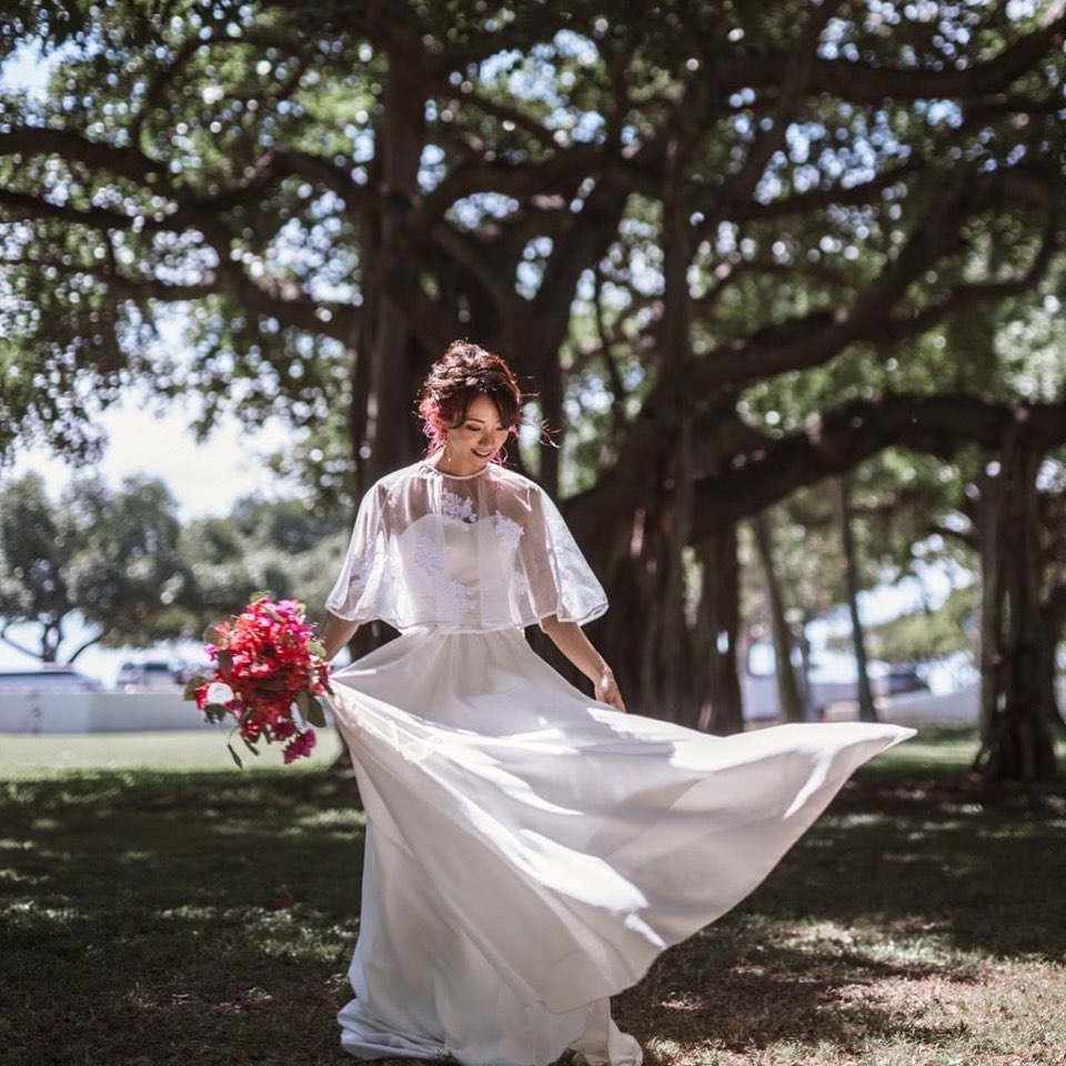 撮影時にちょっとしたイメージチェンジをしたり、リゾート内を動きやすいようにカジュアルな装いのデザインにして挙式では神聖にロングベールで雰囲気を楽しむ方が多いです。