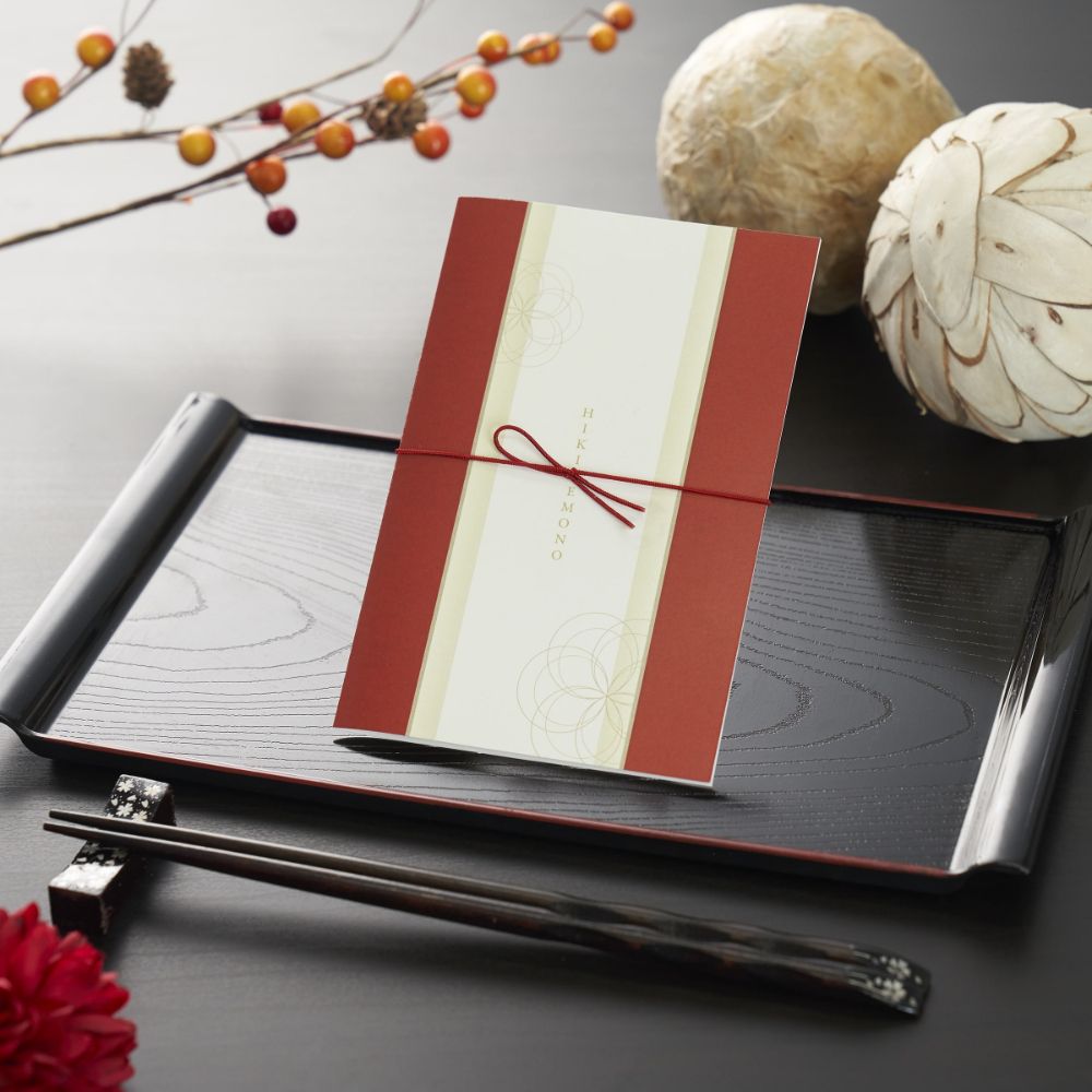 メインの引き出物と引き菓子がそれぞれ1点(合計2点)を掲載アイテムからゲスト様にお選びいただきます。(お申込みはインターネットから)