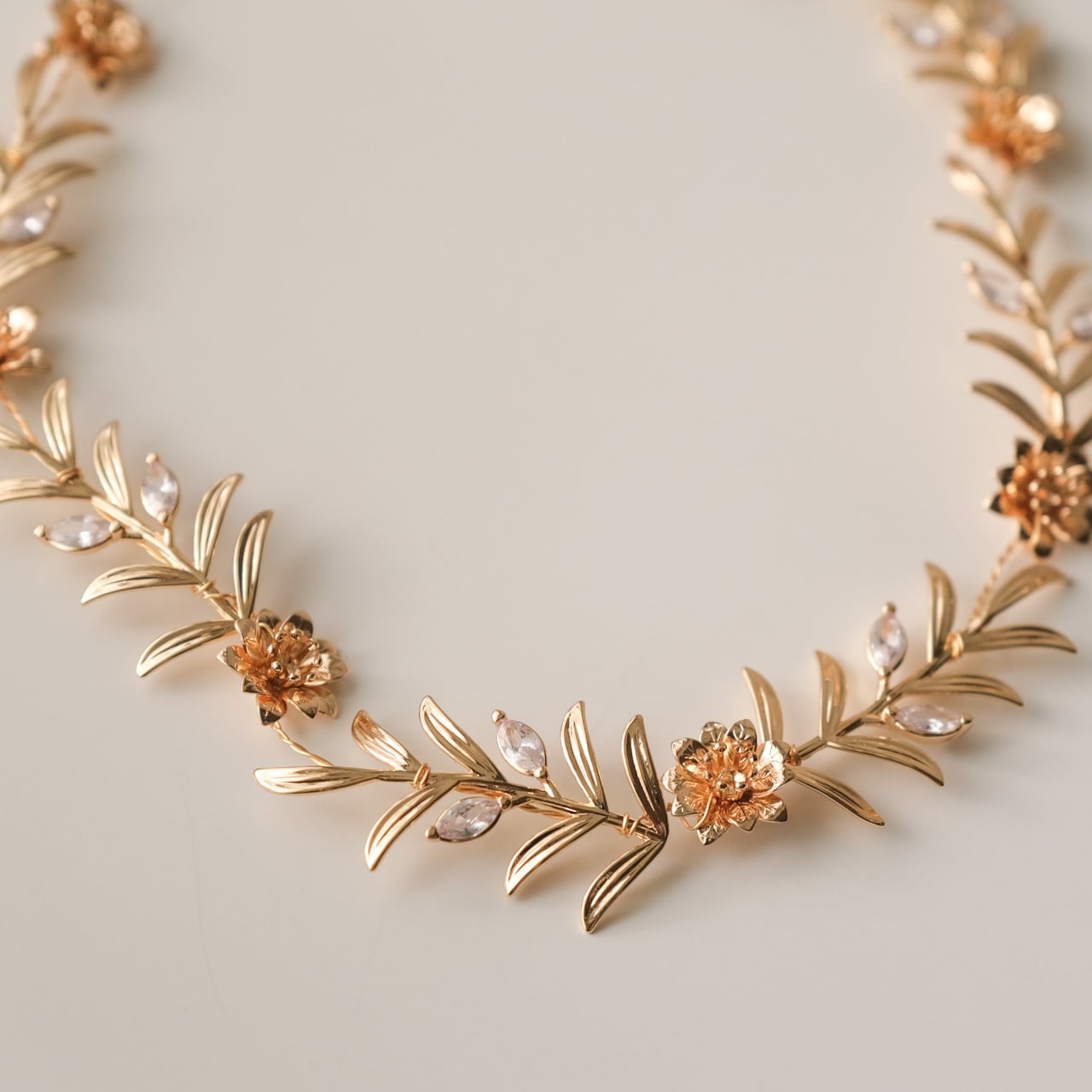 小枝カチューシャ ブライダルヘッドドレス ナチュラルリーフ ゴールド t1 【結婚式 ヘアアクセサリー】