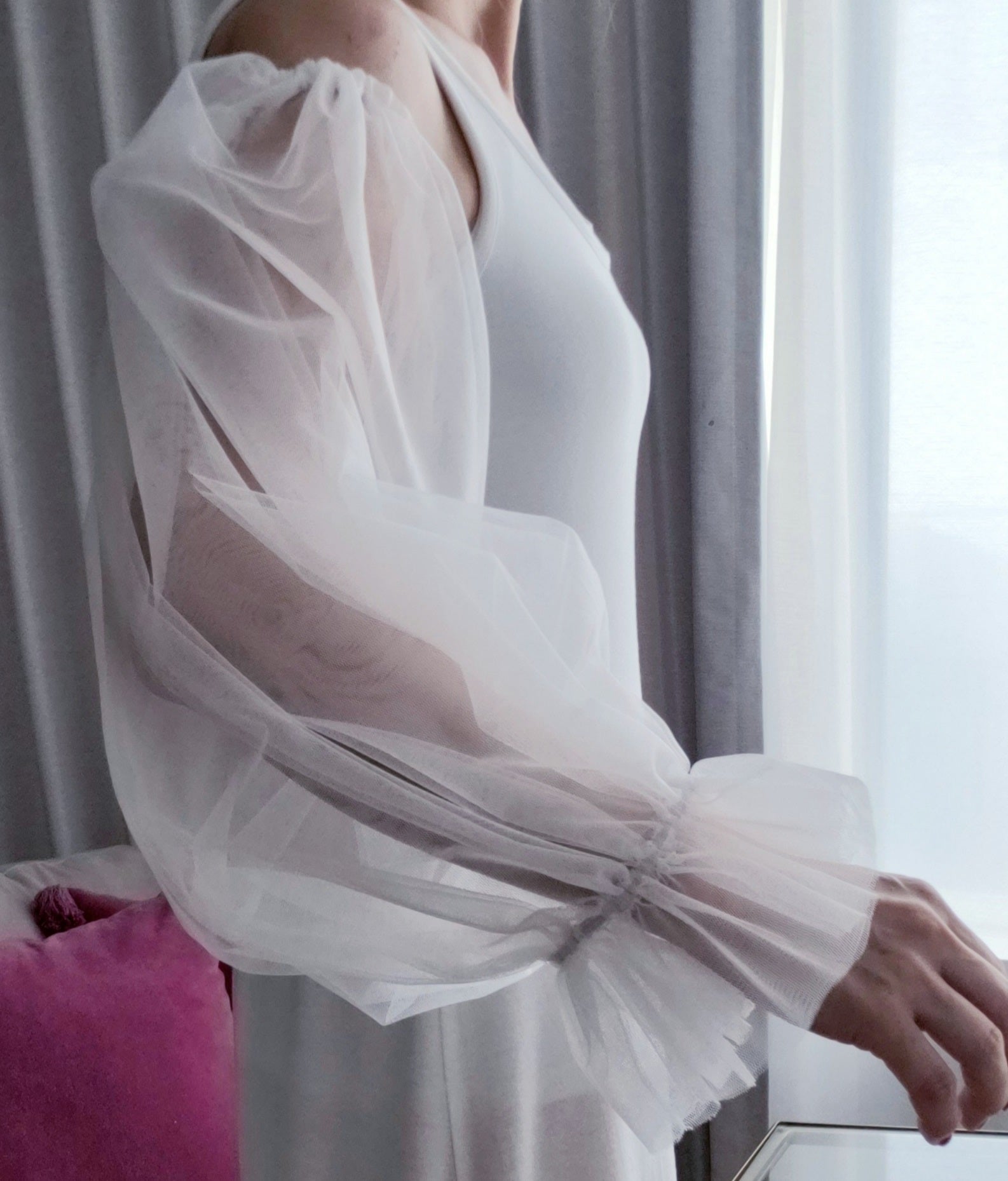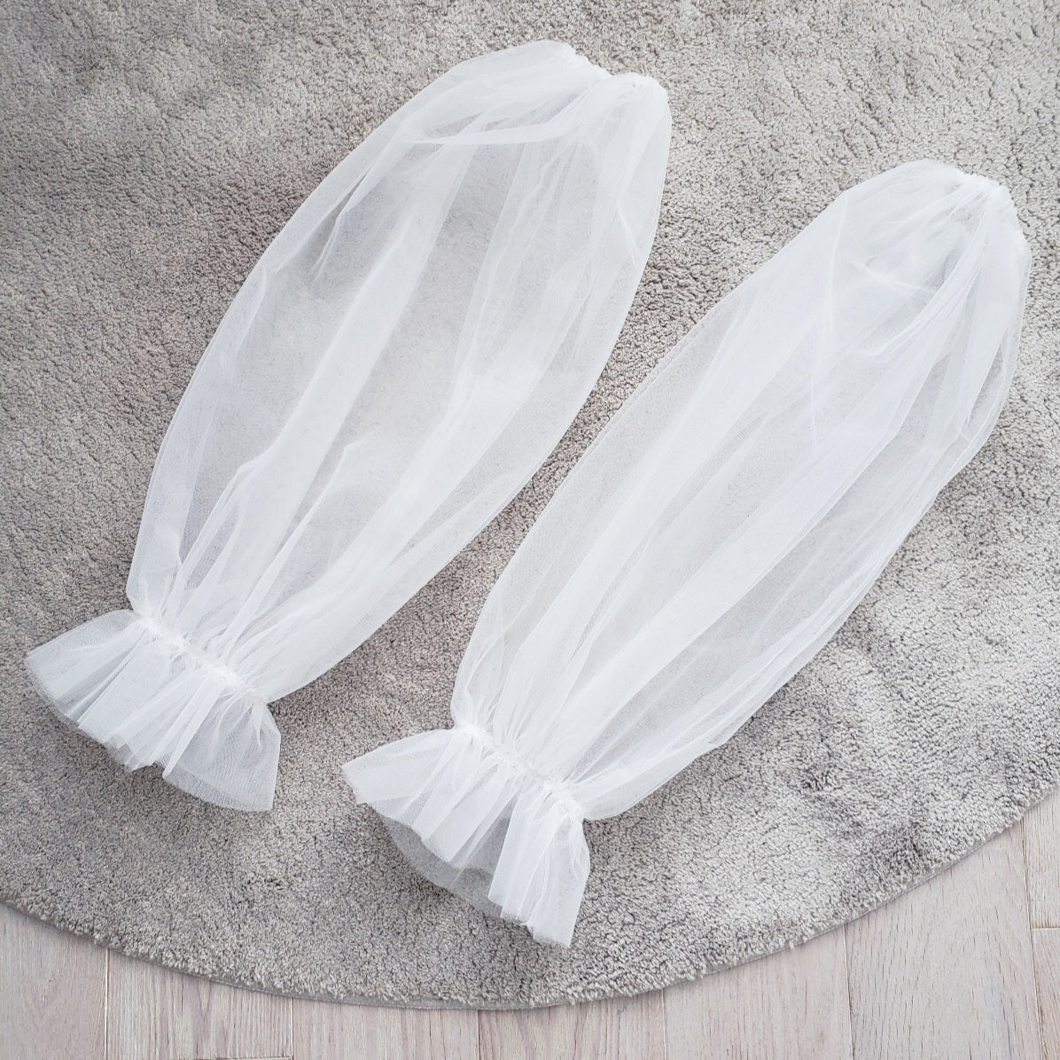 パフスリーブのつけ袖(長袖タイプ)。両サイドはゴムなのでお好きな長さやふんわり感にアレンジできます。