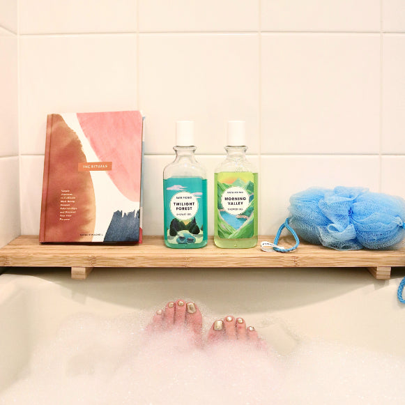 シャワージェルの泡でカラダをやさしく洗い、