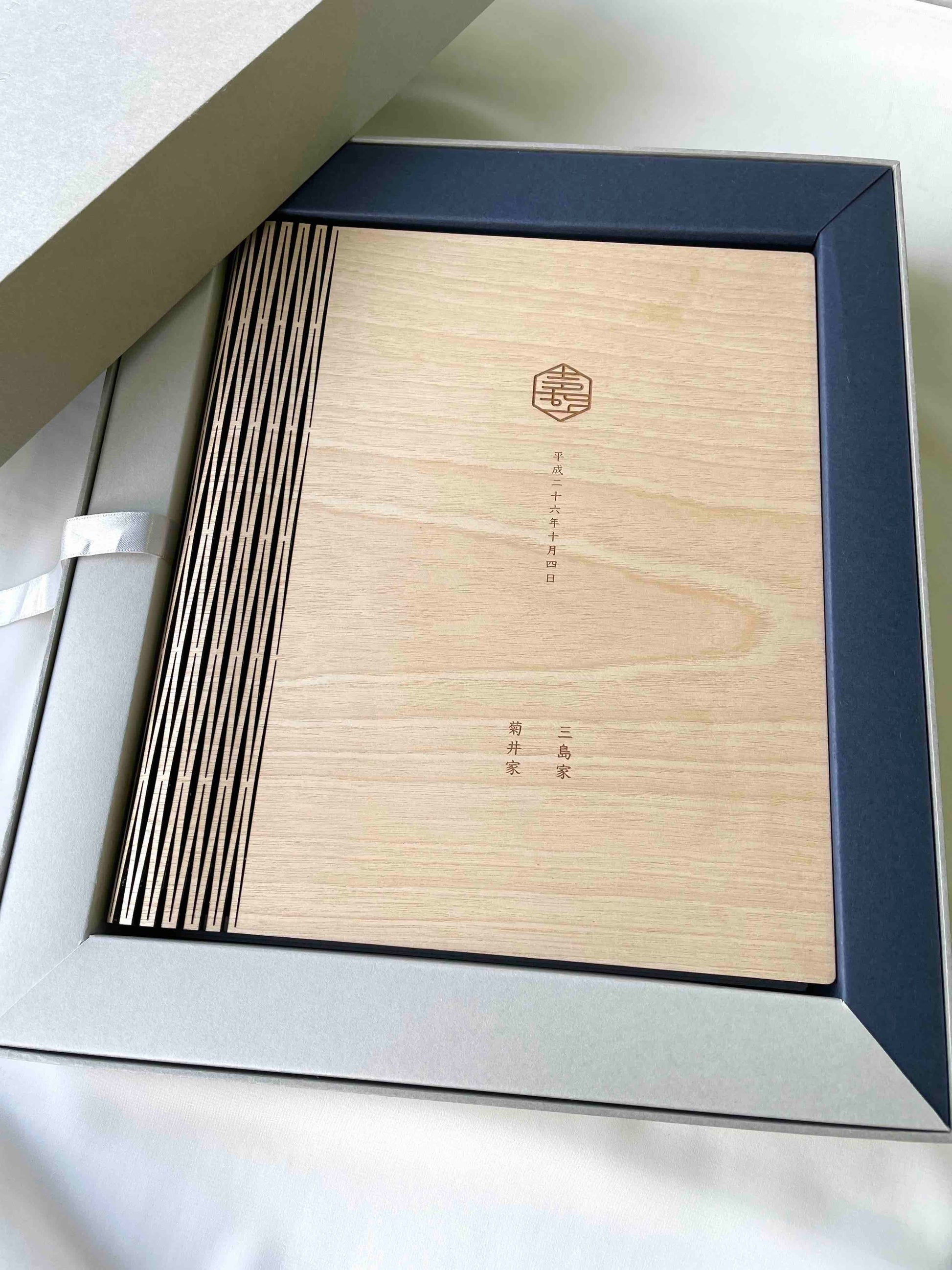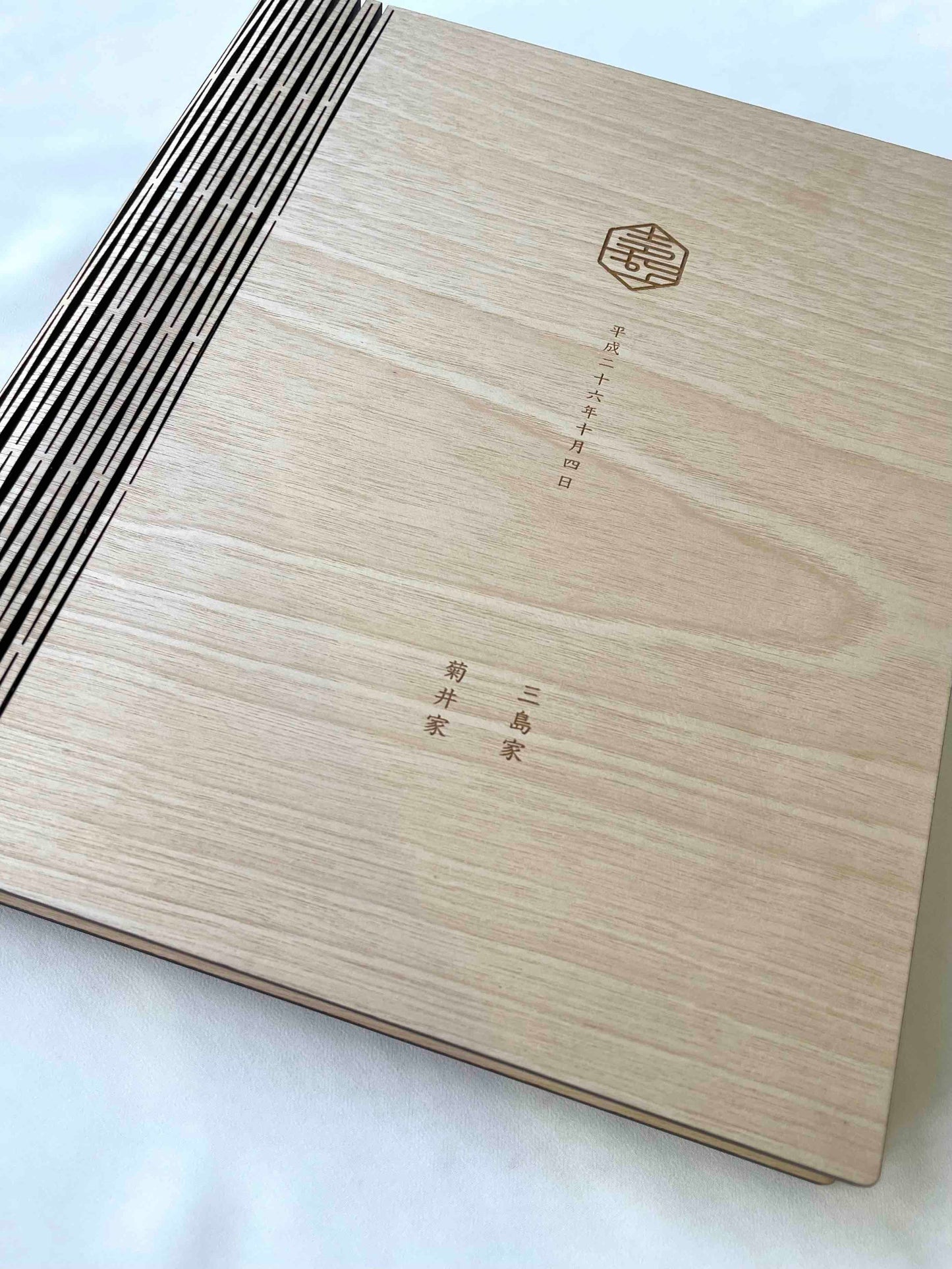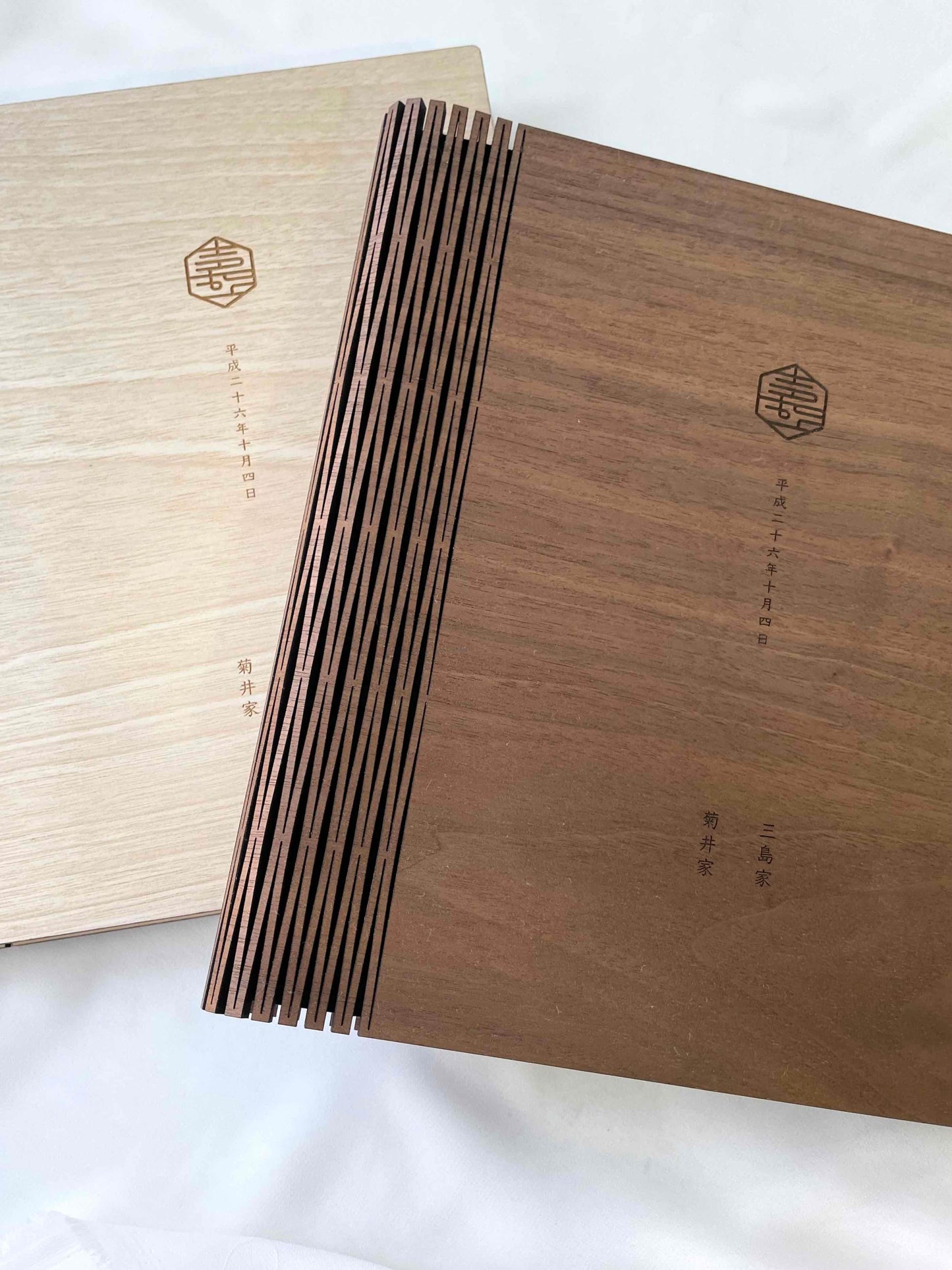 ⼀枚の⽊からつくりあげたウェディングアルバム。