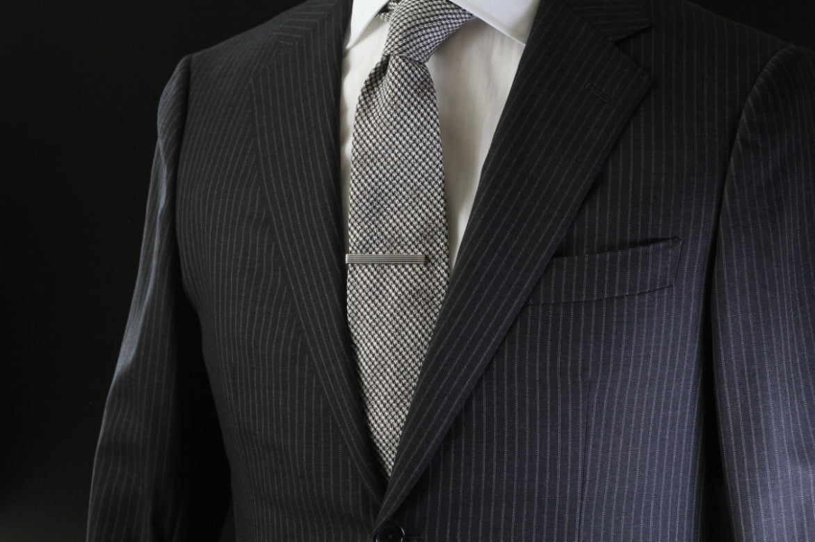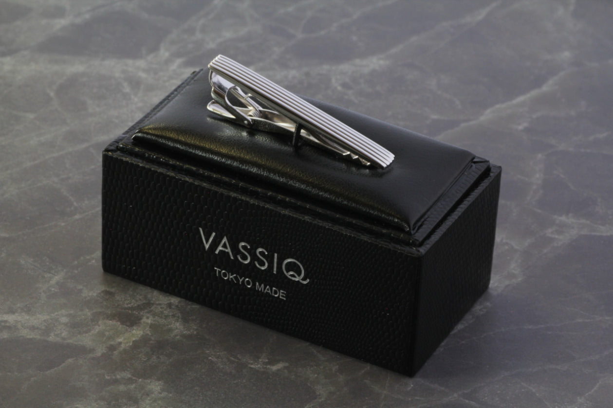 付属は2種類のバネ(スプリングと板バネ)を効かせて、先端部分と板バネの2か所でネクタイをしっかりとホールドしています。着用時はネクタイの裏側にあるため見えませんが、流線形のやわらかいデザインでとても上品なイメージです。隠れたおしゃれを楽しめます。