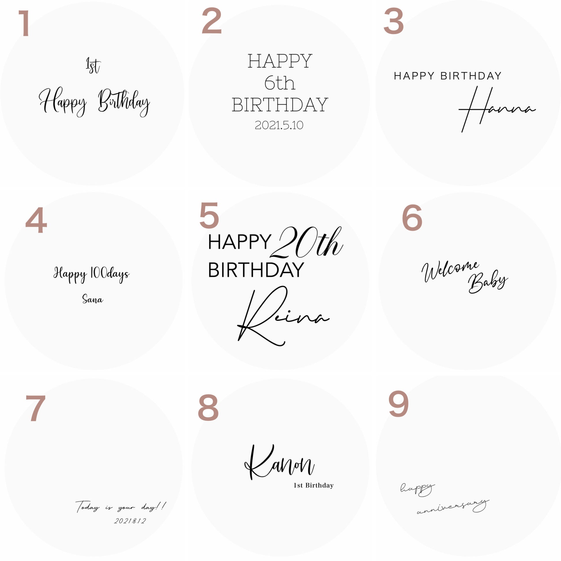 ⑤purple ⑥pink ⑦blue ⑧brown ⑨green