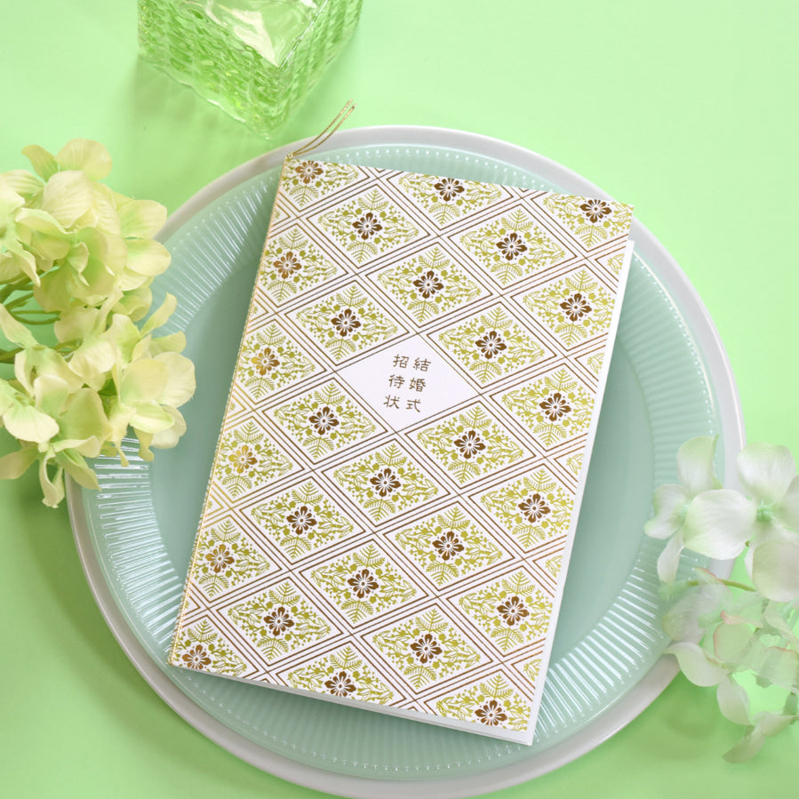 【結婚式 招待状セット】花菱 グリーン (印刷込み)【結婚式 ペーパー 招待状】
