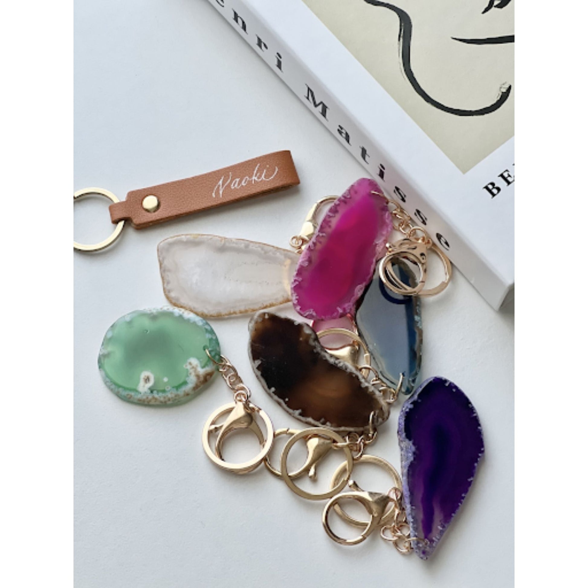 天然石キーホルダー:ナチュラル or ピンク or ブルー or パープル or グリーン or ブラウン