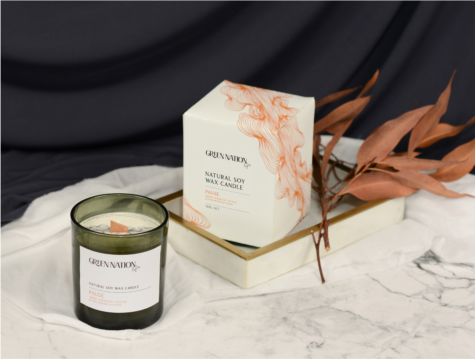 ソイワックスを使用し、ウッドウィック(木芯)もナチュラルなヴィーガンフレンドリーのアロマキャンドル。