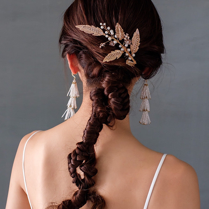 【ヘッドドレス】小枝 ゴールド リーフ パール ヘッドドレス 【結婚式 ヘアアクセサリー】