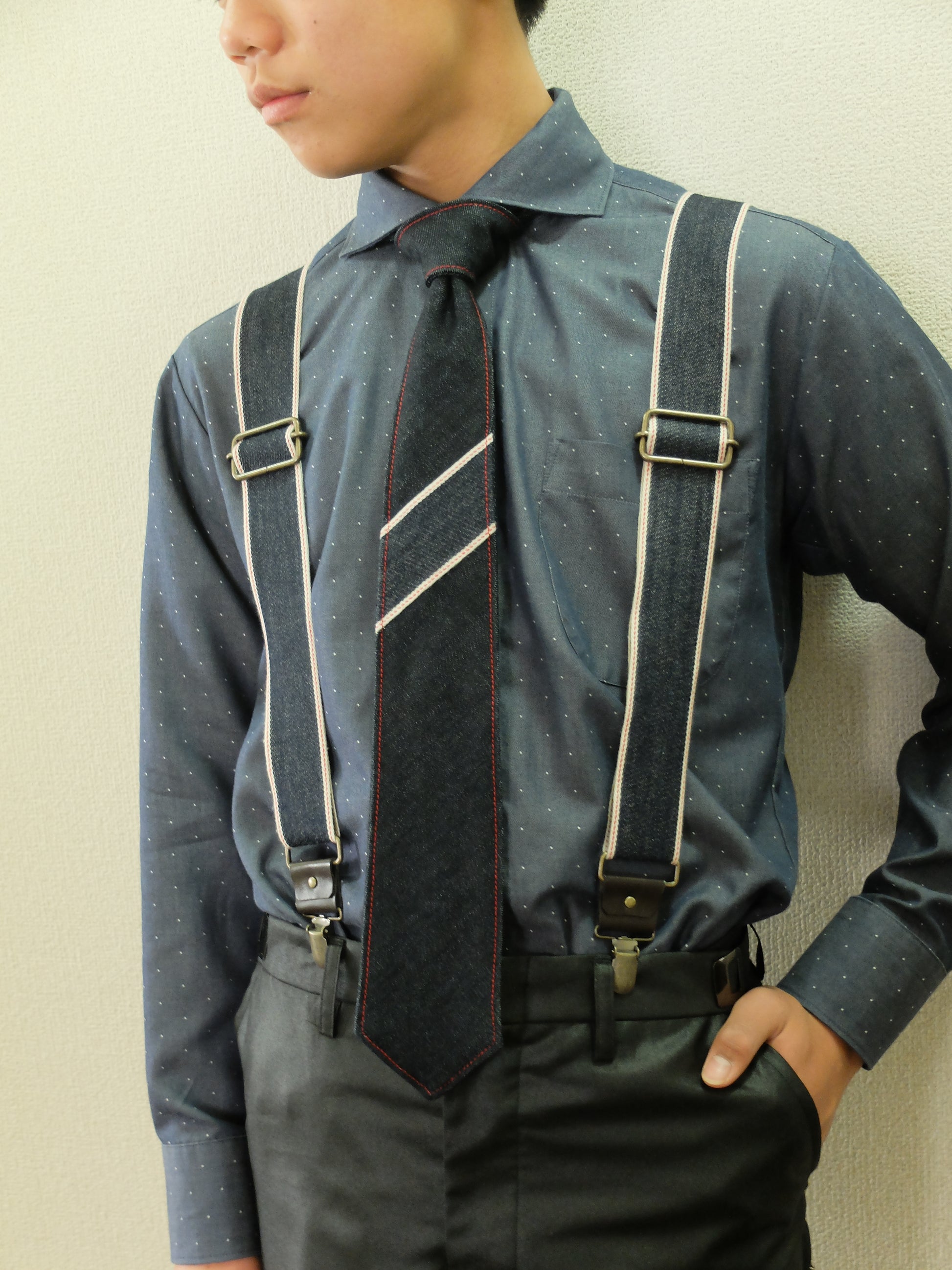 selvedgeーseriesデニムネクタイ&サスペンダー 【結婚式 メンズ小物】
