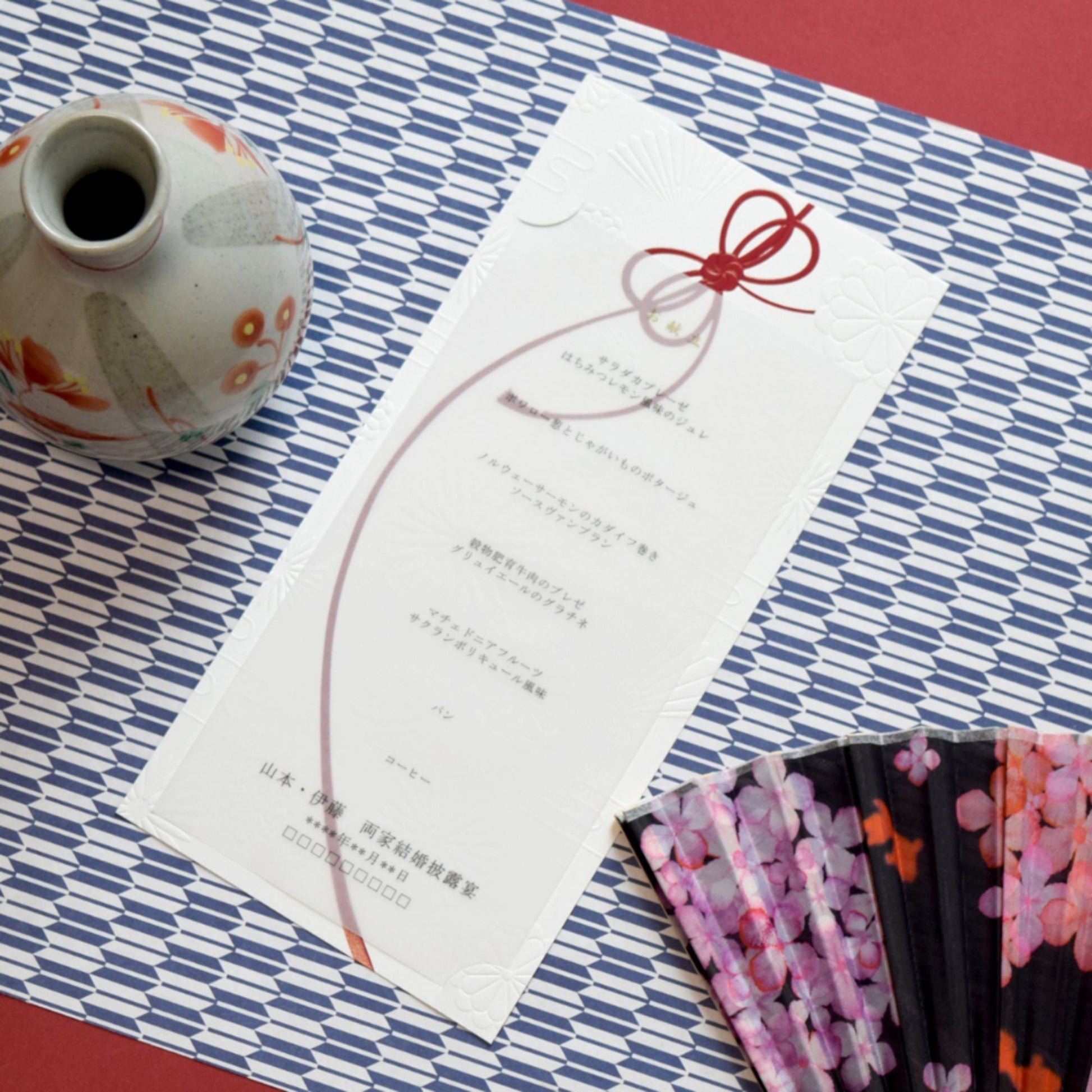 トレーシングペーパーにメニュー内容を印字しており、上品な仕上がりとなっております。
