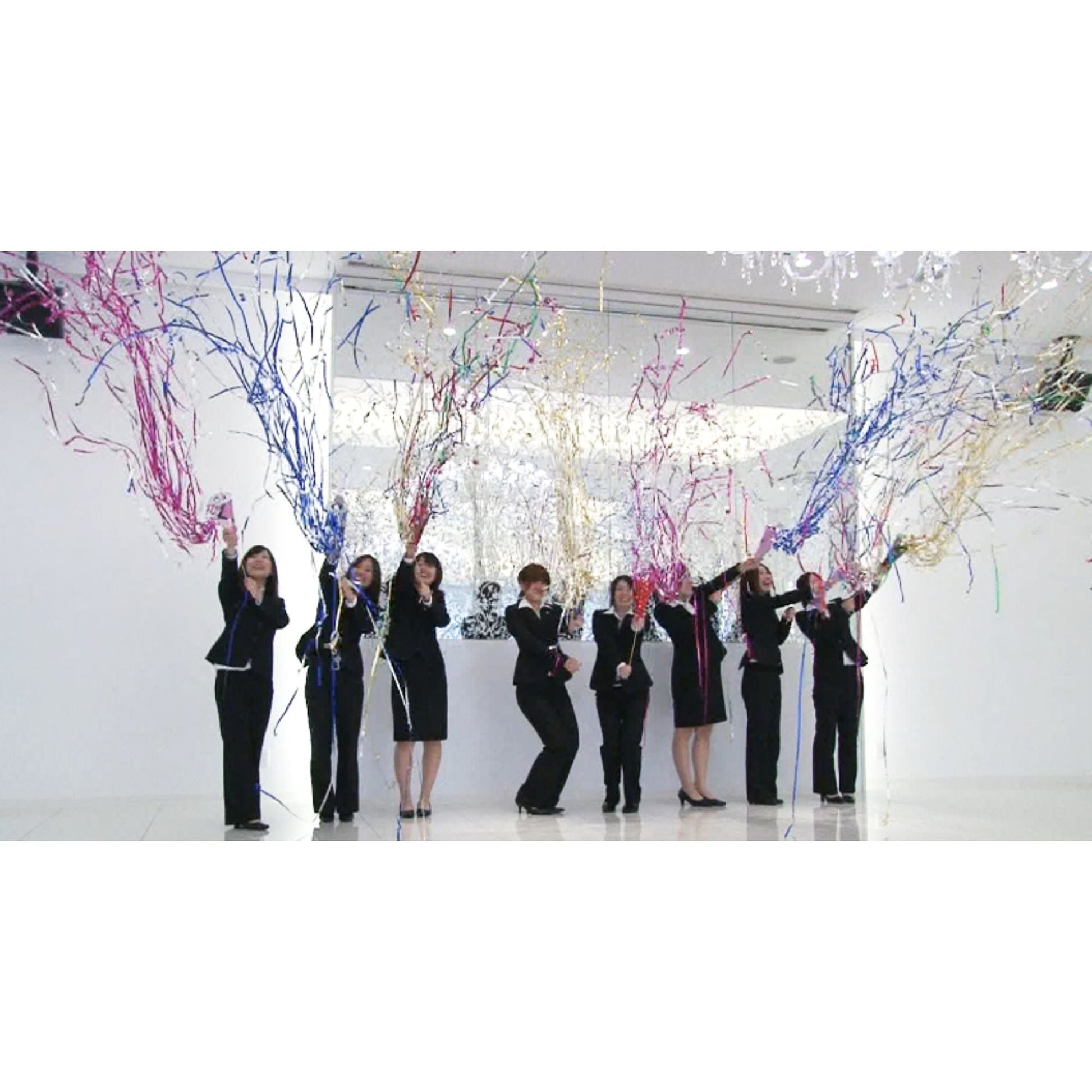 4種類の色テープが飛び出すクラッカーが、12個セットになったアイテムです。会場の様々な場所から、1本あたり60本の色とりどりのテープが飛び出す様子は圧巻!盛り上がること間違いなし!!会場を華やかに色鮮やかに染め上げます。こちらは、ビッグキャンディクラッカーと組み合わせることで、ゲストも参加しての演出にぴったり!より会場を華やかに一体感ある雰囲気に演出ができます。このタイプはまとまって飛び出す散らからないタイプなので後片付けがとても簡単!次の進行の妨げになりません。12個のクラッカーをディスプレイするスタンドも付属なので、ゲストにクラッカーを手に取って選んでもらうことが可能です。