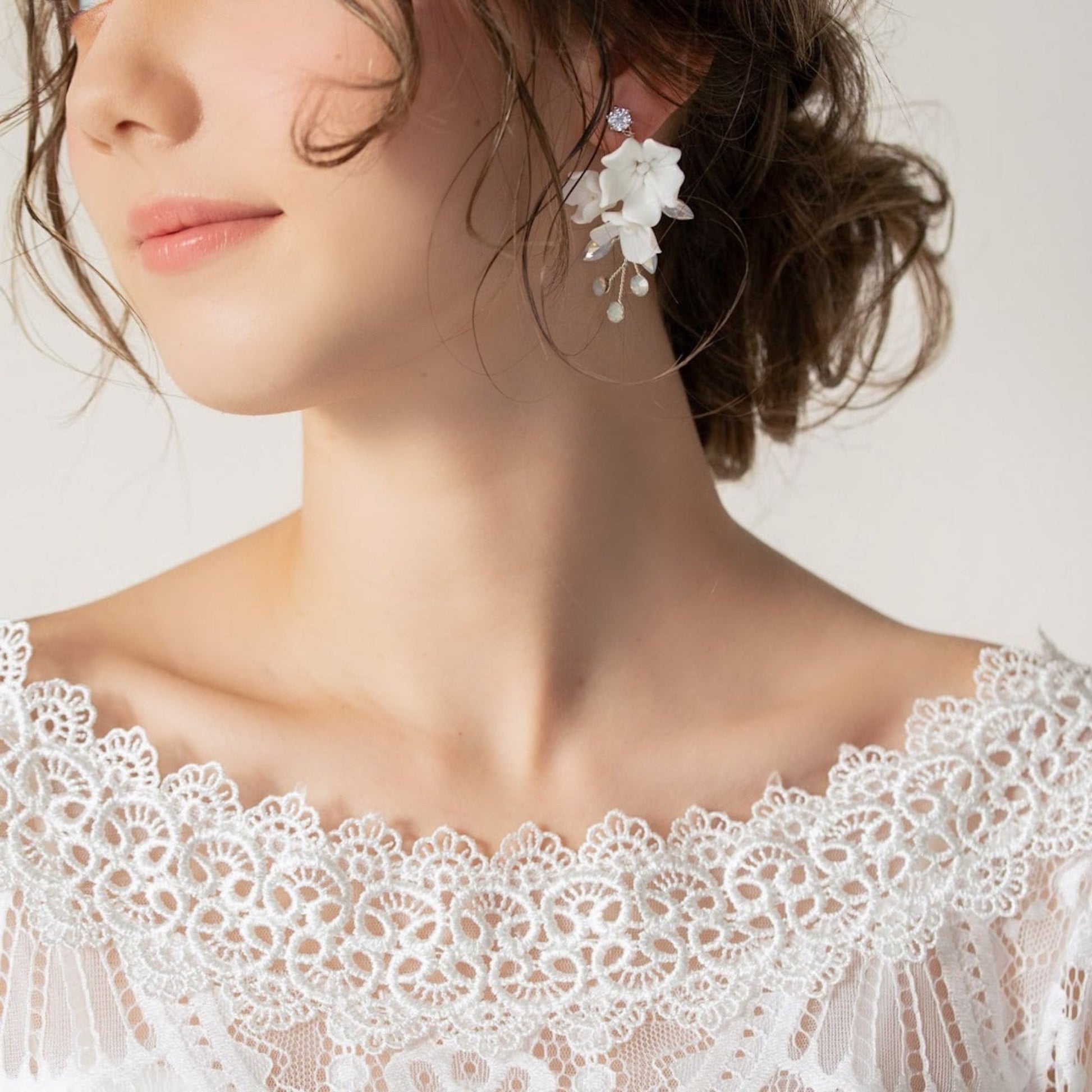 【ピアス】ブライダル 小枝ピアス ホワイトフラワー ジルコニア シルバー u17 【結婚式 ピアス イヤリング】