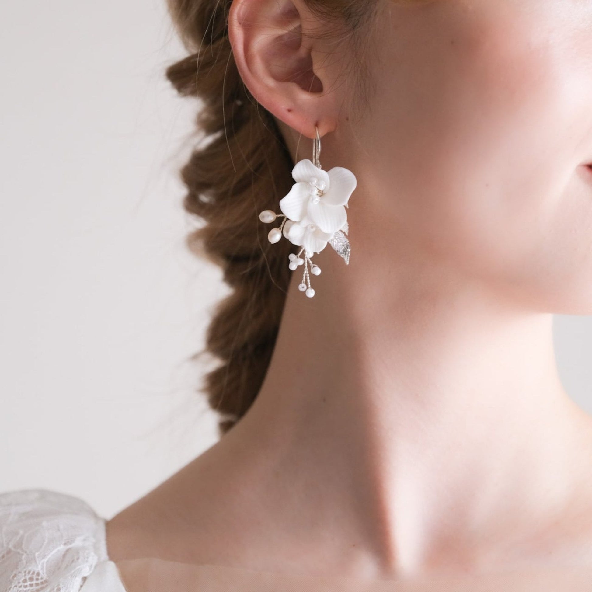【ピアス】ブライダル 小枝ピアス ホワイトフラワー シルバーリーフ u15 【結婚式 ピアス イヤリング】