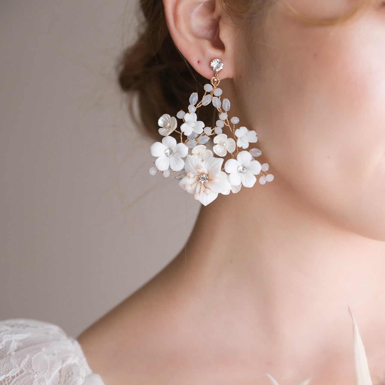 【ピアス】ブライダルピアス 小枝 ホワイトフラワー ゴールド u12 【結婚式 ピアス イヤリング】