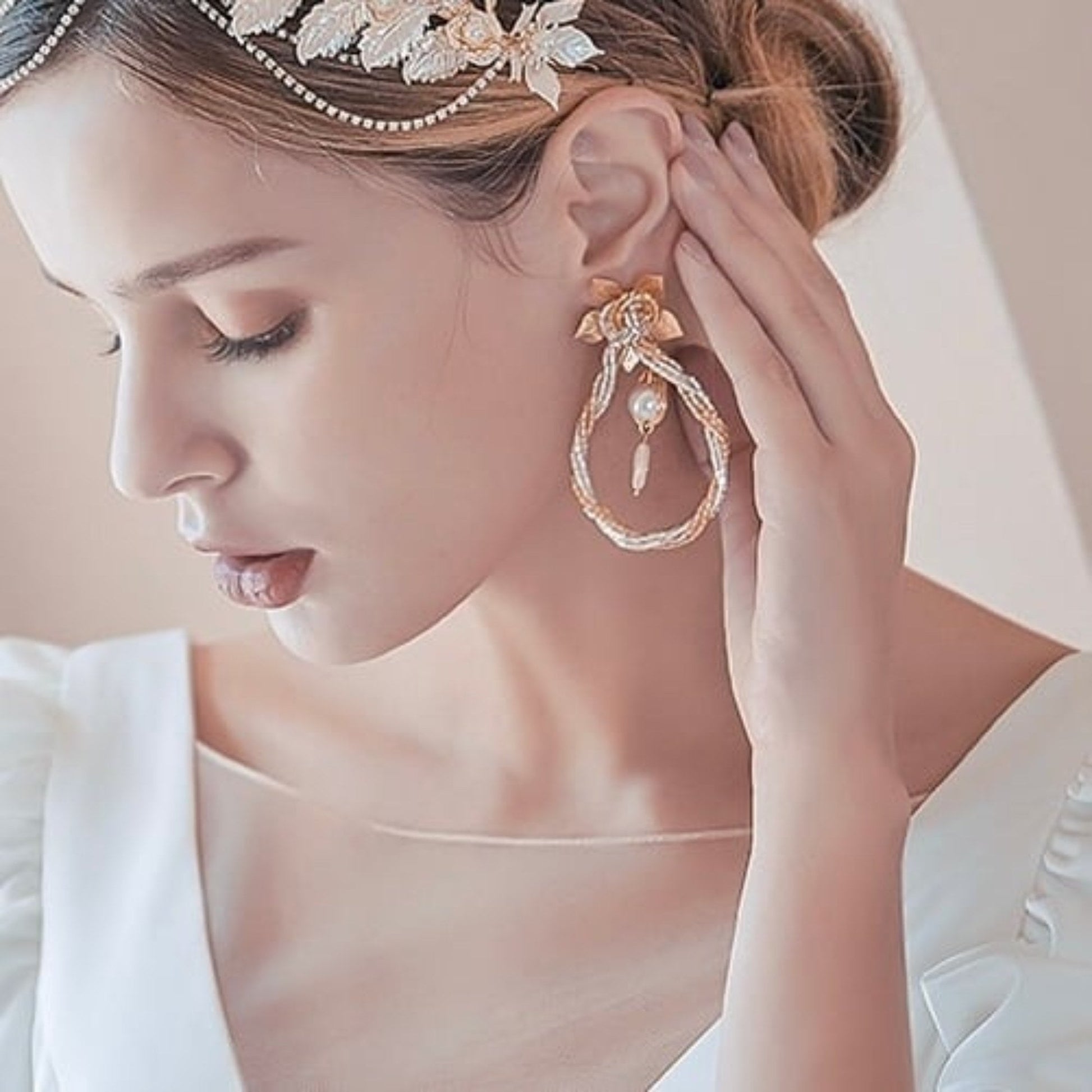 【ピアス】ブライダルピアス ビーズ パール ゴールド u8 【結婚式 ピアス イヤリング】