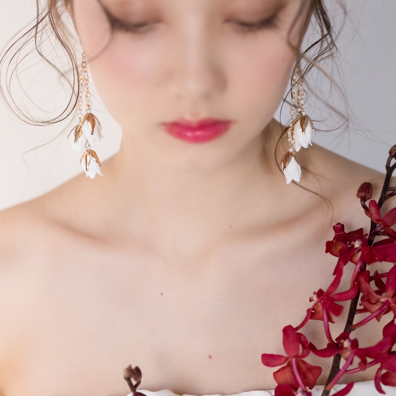 【ピアス】ブライダルピアス ホワイト ゴールド つぼみ u6 【結婚式 ピアス イヤリング】