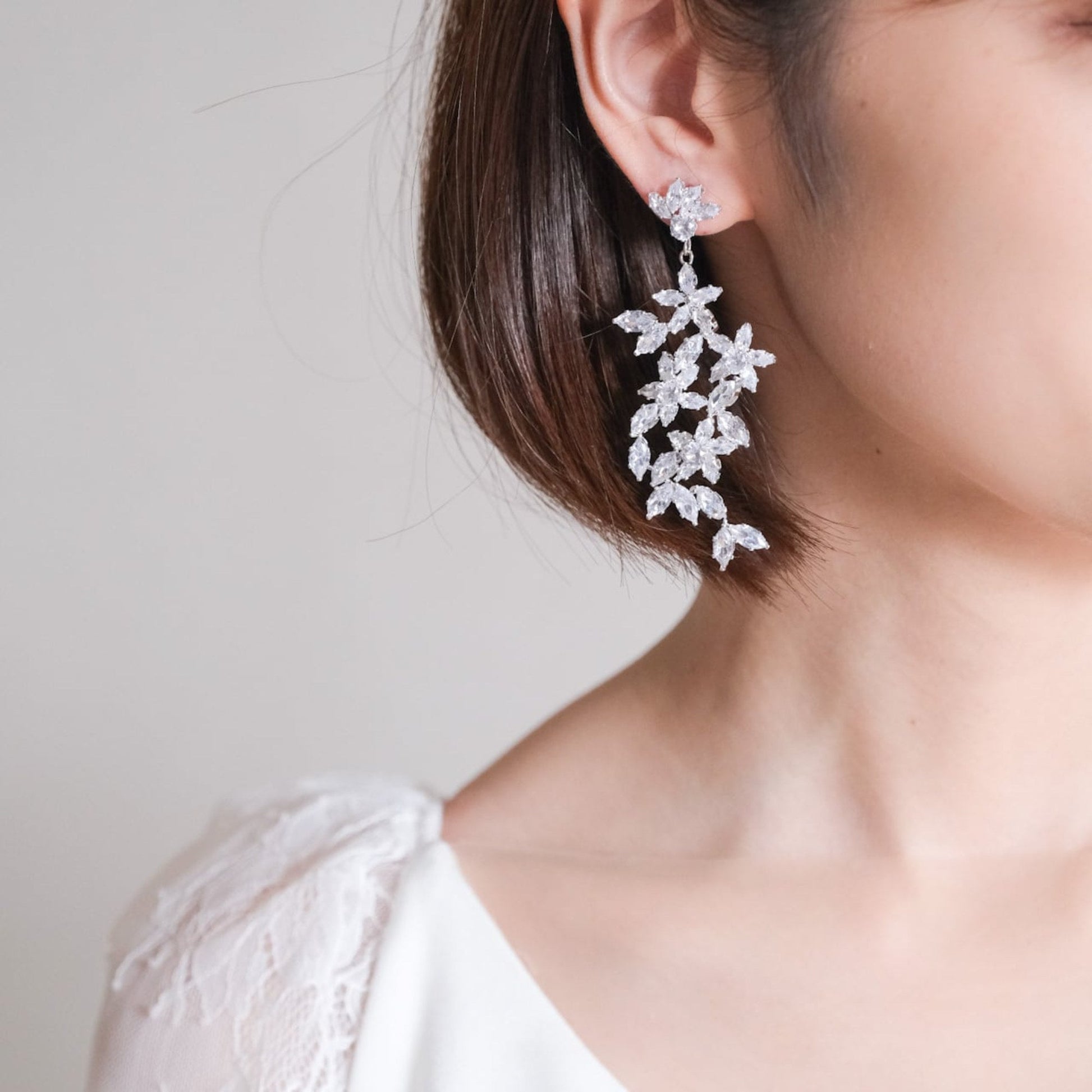 【ピアス】ジルコニア フラワー ウェディング ブライダルピアス シルバー t15 【結婚式 ピアス イヤリング】