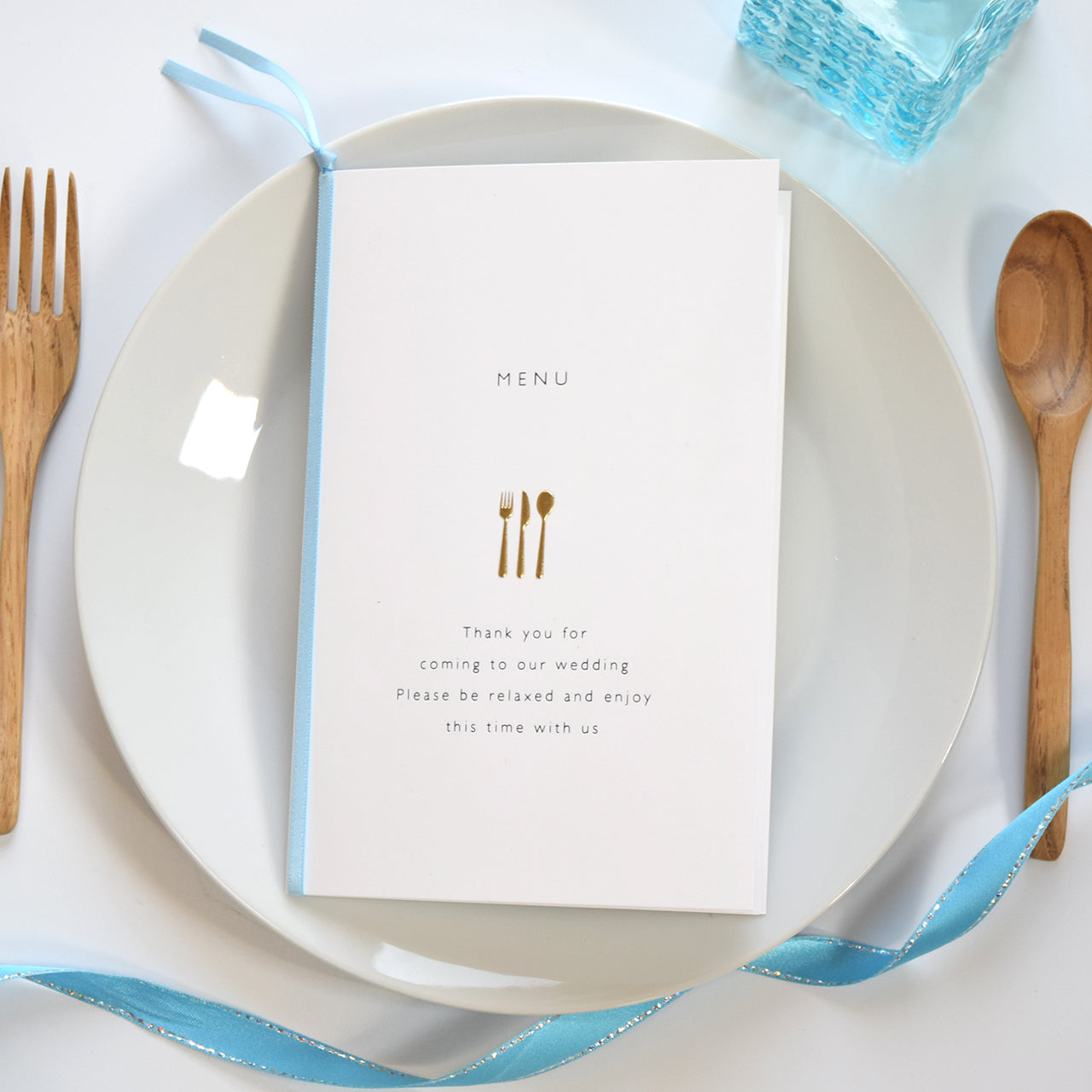 メニュー (印刷込み) チャーム ブルー 結婚式 メニュー【結婚式 ペーパー メニュー表】