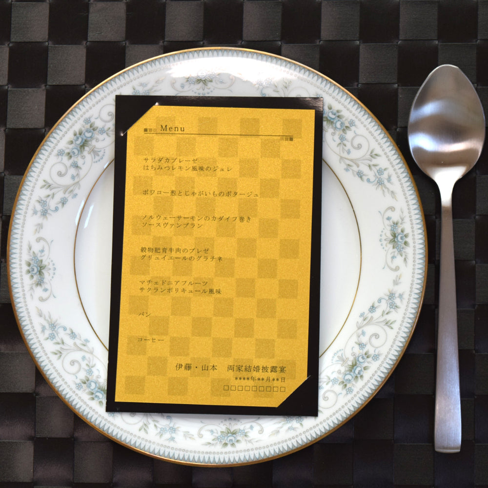 メニュー (印刷込み) ルーチェ ブラック 結婚式 メニュー【結婚式 ペーパー メニュー表】