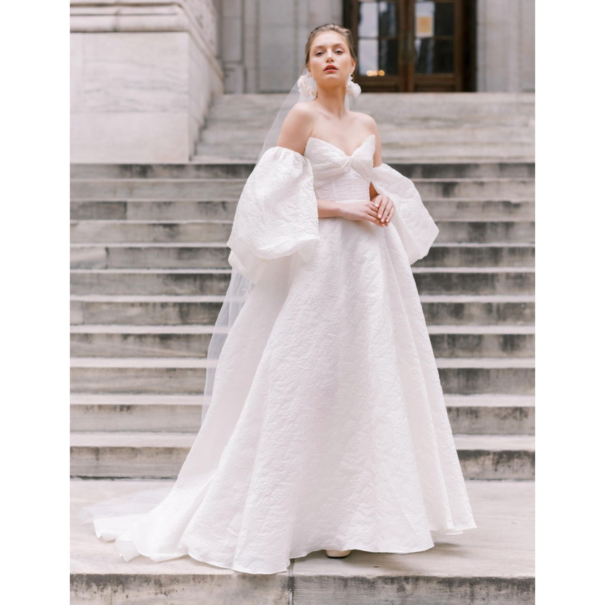 ビックシルエットのパフと、スカートのスリットが感度の高い花嫁様にピッタリ。