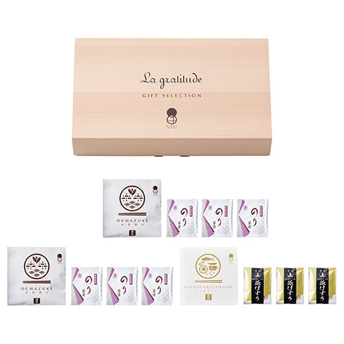 茶漬けは風味豊かなのり茶漬けで鰹節とセットにした詰めあわせです。