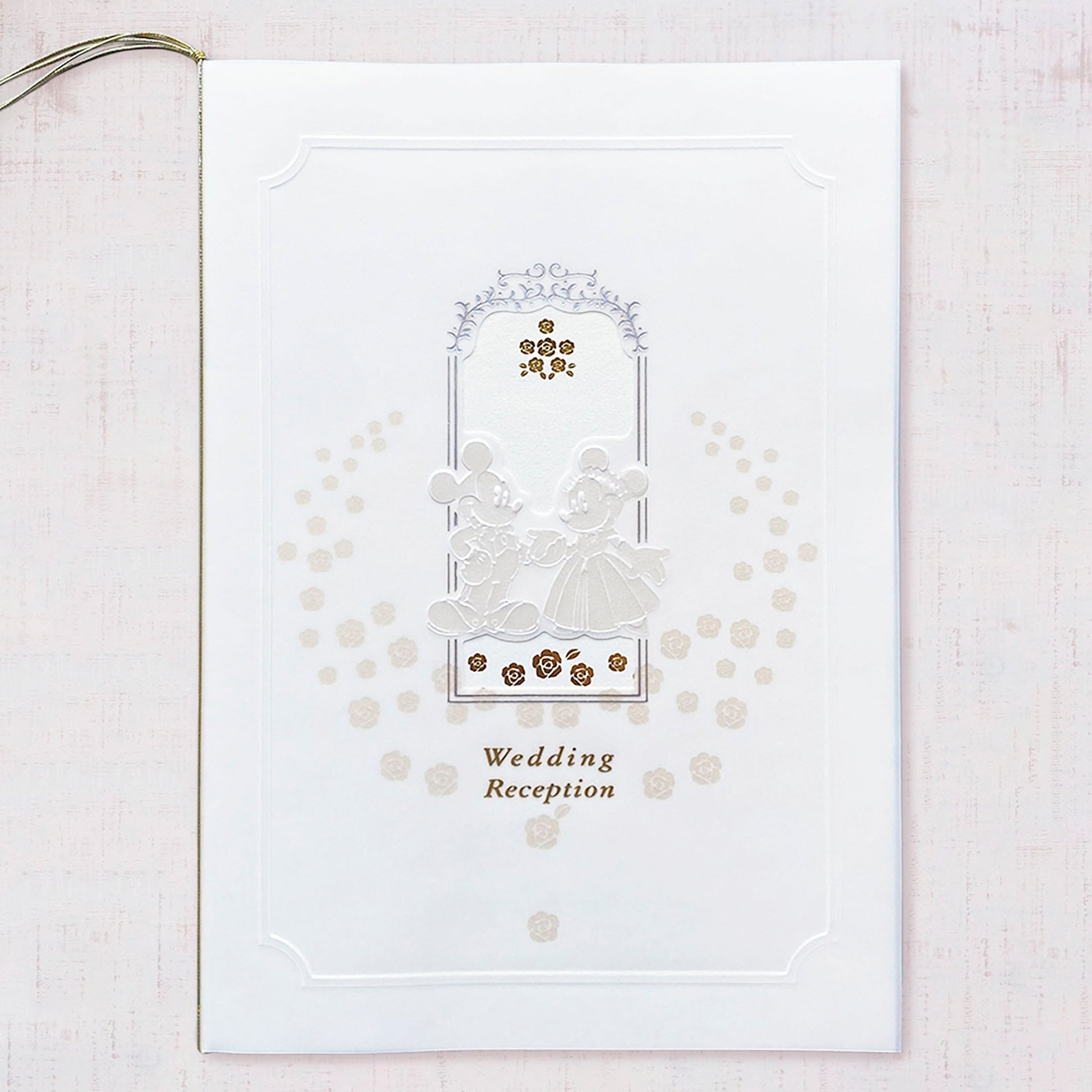 磨りガラスのような半透明素材にミッキー&ミニーが浮かび上がる可愛らしいペーパーアイテム。 ゴールドのバラが透けて見える演出が素敵!遊び心がありながら上品デザインなので、どのようなコーディネートとも相性の良いアイテムです。